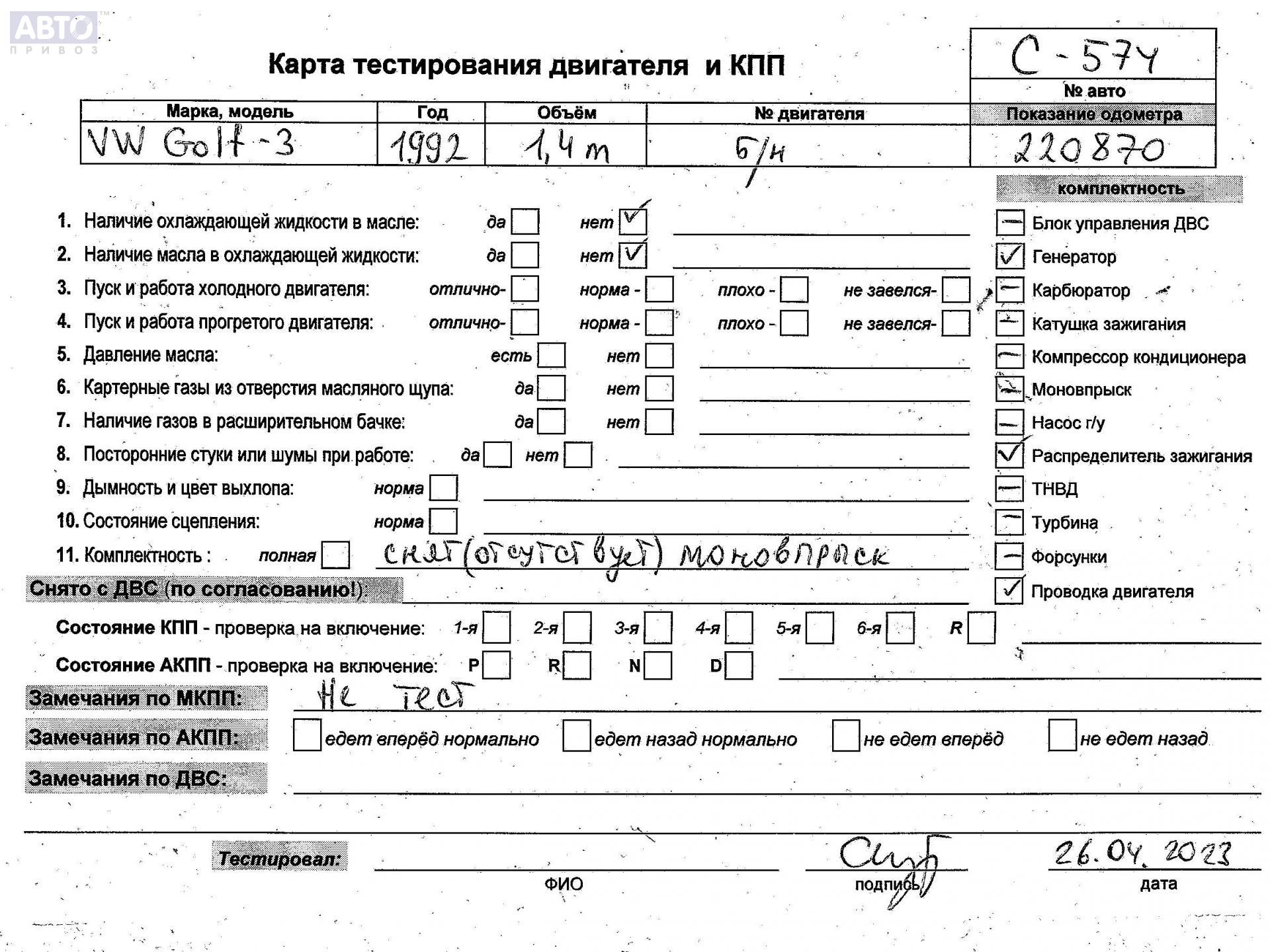 | Марка / Модель / Год: | Volkswagen Golf-3 1992 |