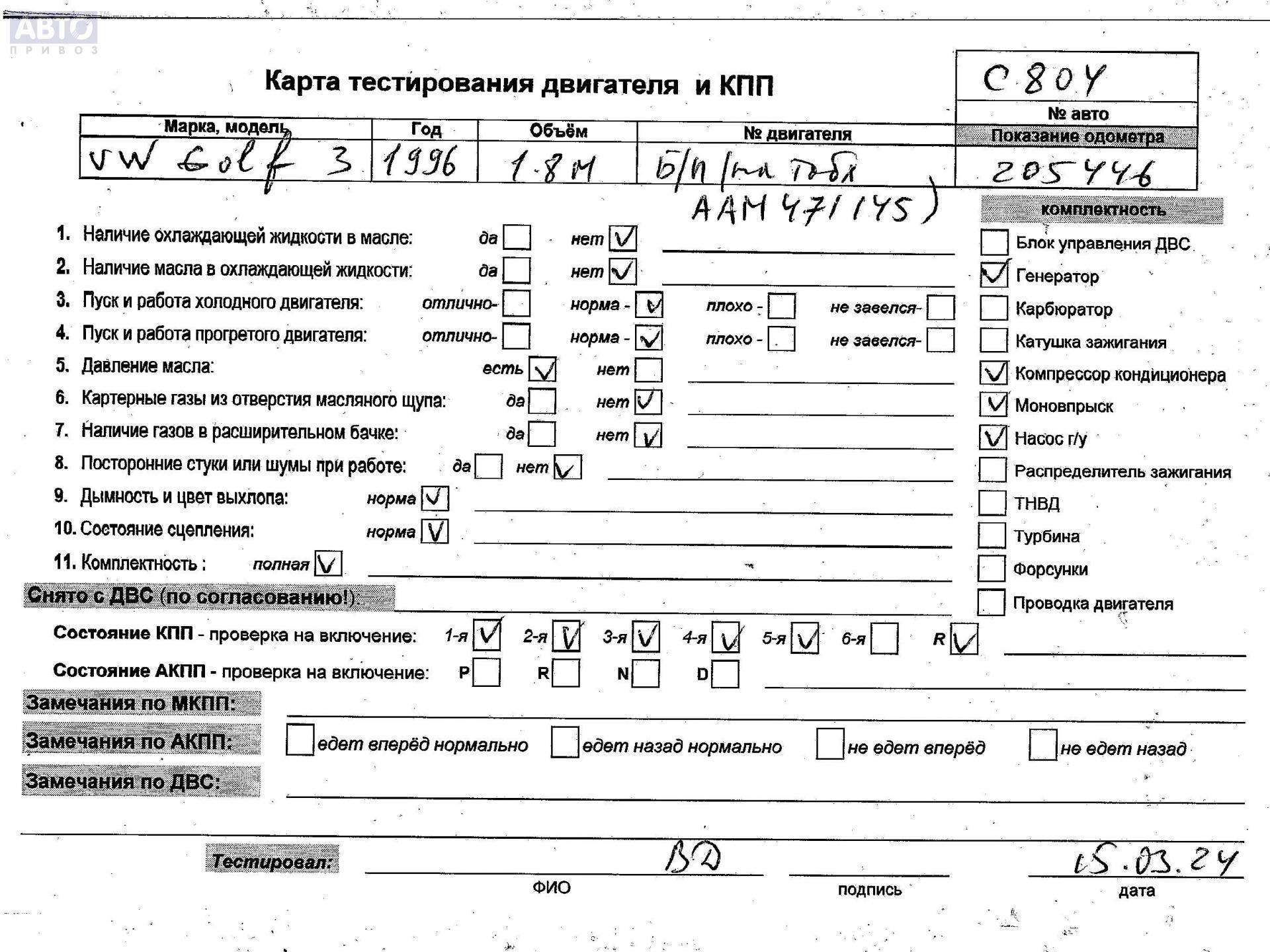 | Марка / Модель / Год: | Volkswagen Golf-3 1996 |
