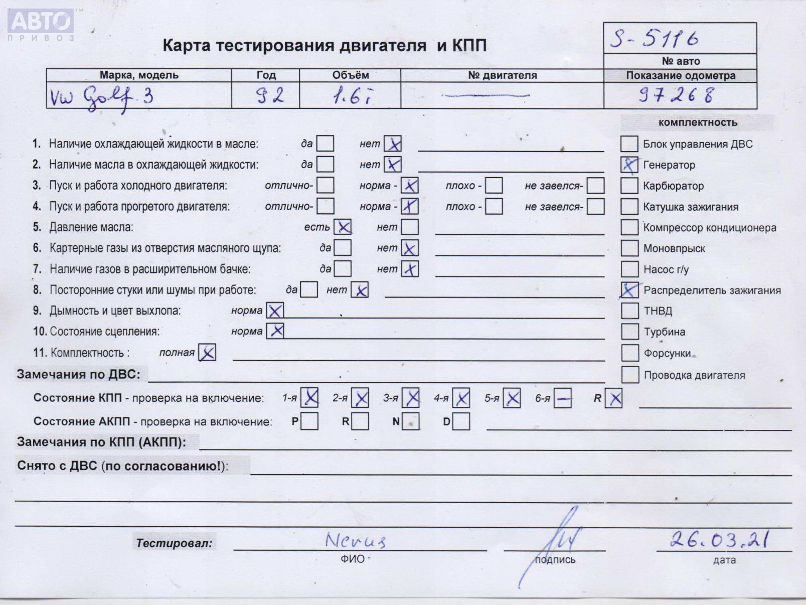 | Марка / Модель / Год: | Volkswagen Golf-3 1992 |