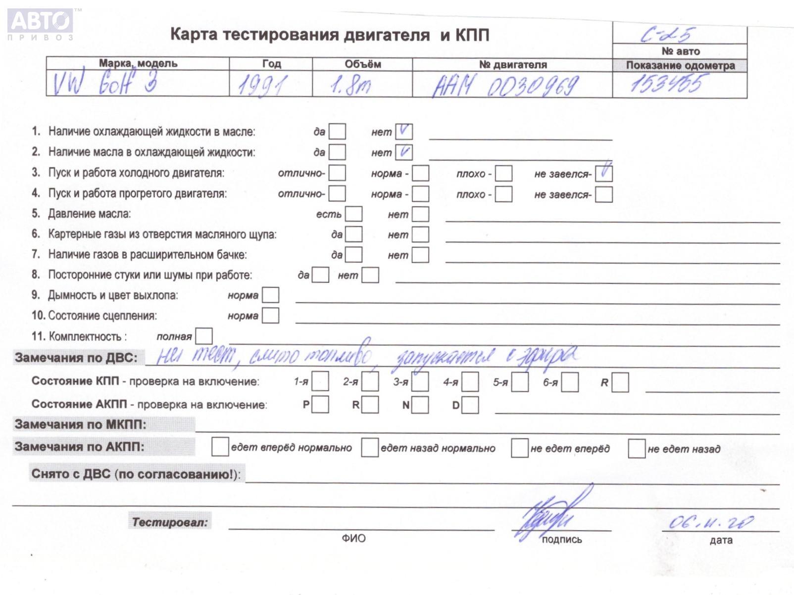 | Марка / Модель / Год: | Volkswagen Golf-3 1991 |