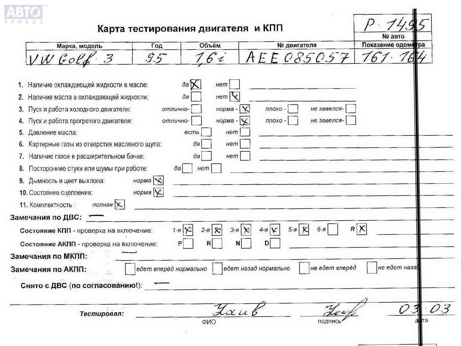 | Автомобиль / VIN: | P1495 WVWZZZ1HZTB074390 |