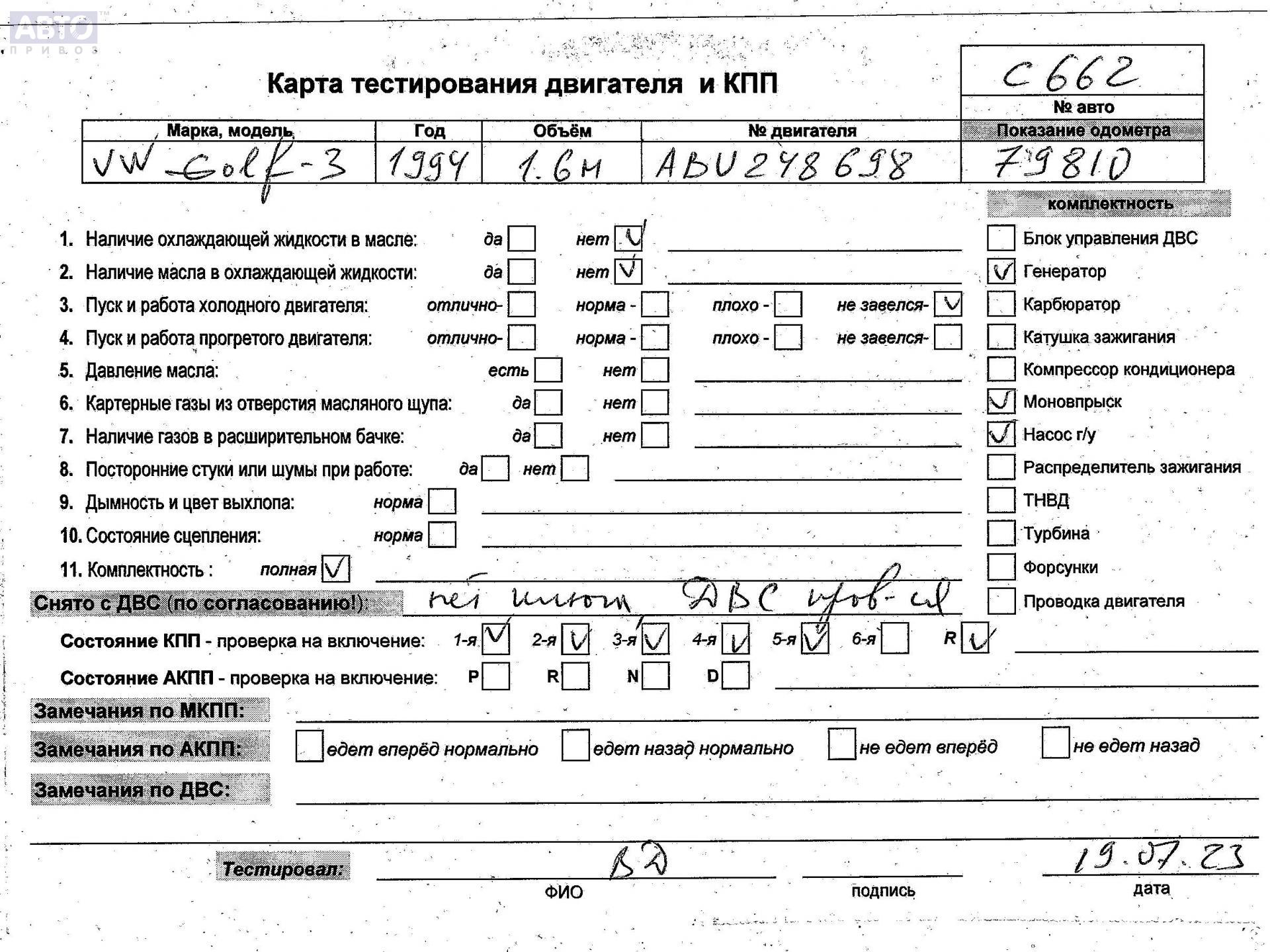 | Марка / Модель / Год: | Volkswagen Golf-3 1994 |