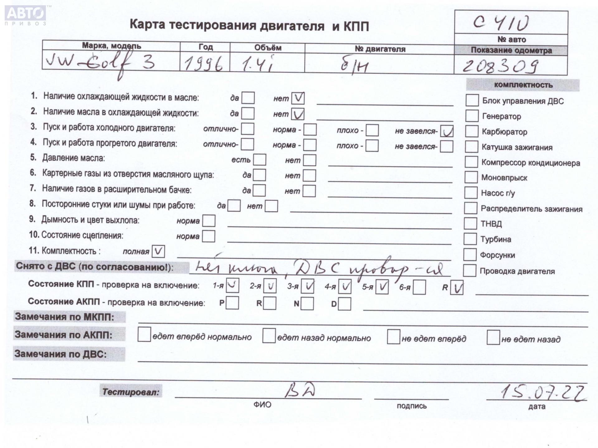 | Марка / Модель / Год: | Volkswagen Golf-3 1996 |
