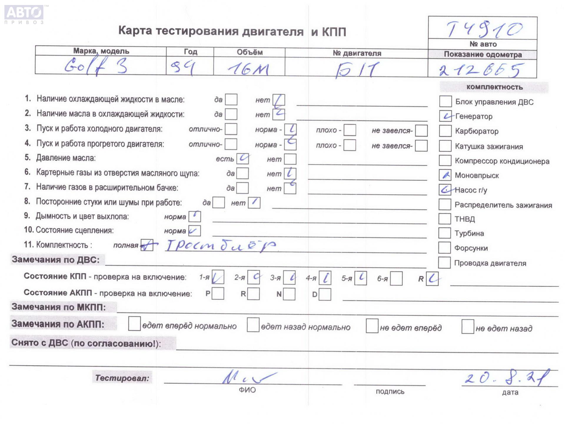 | Автомобиль / VIN: | T4910 WVWZZZ1HZSW153645 |
