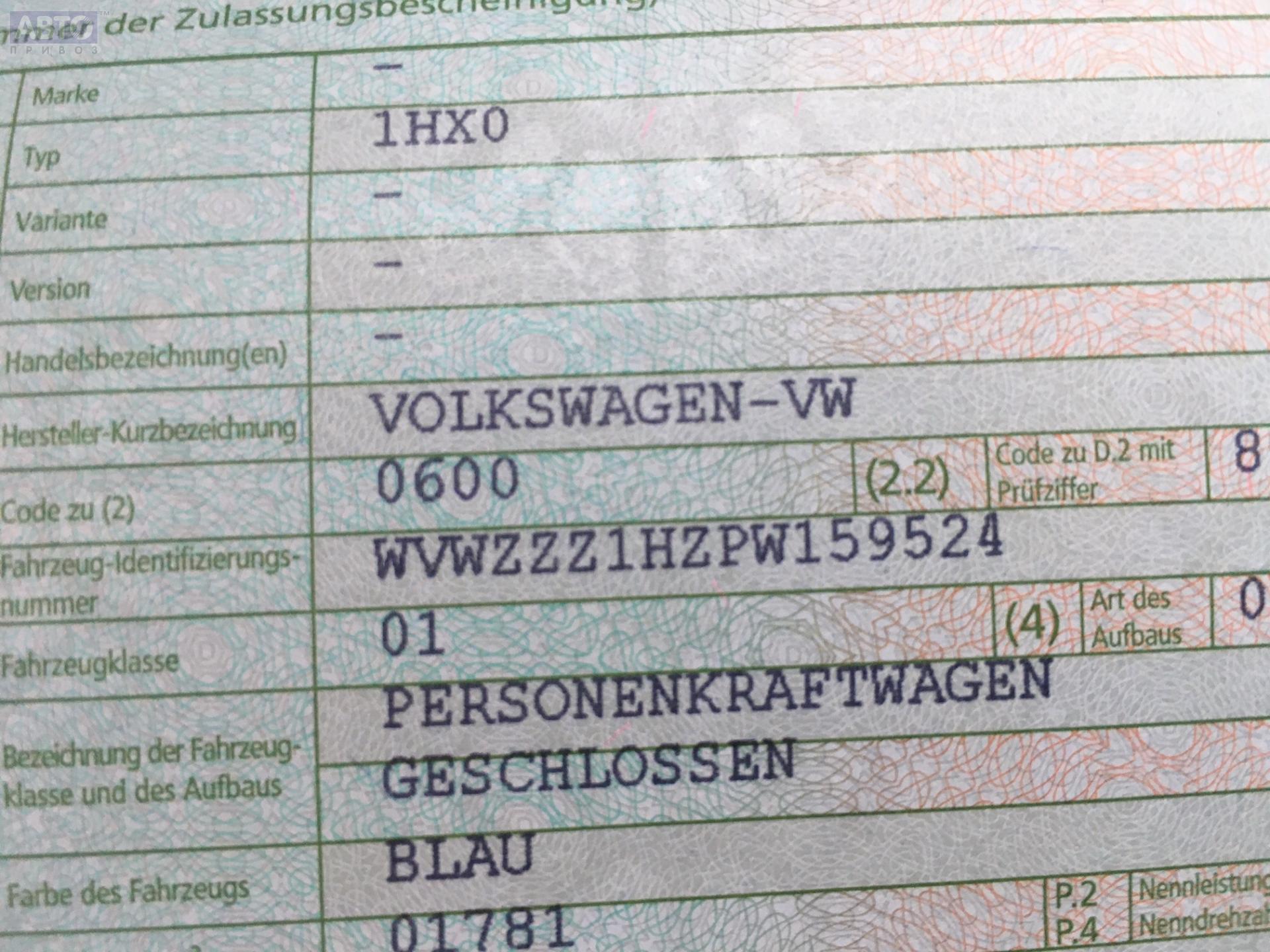 | Автомобиль / VIN: | S7337 WVWZZZ1HZPW159524 |
