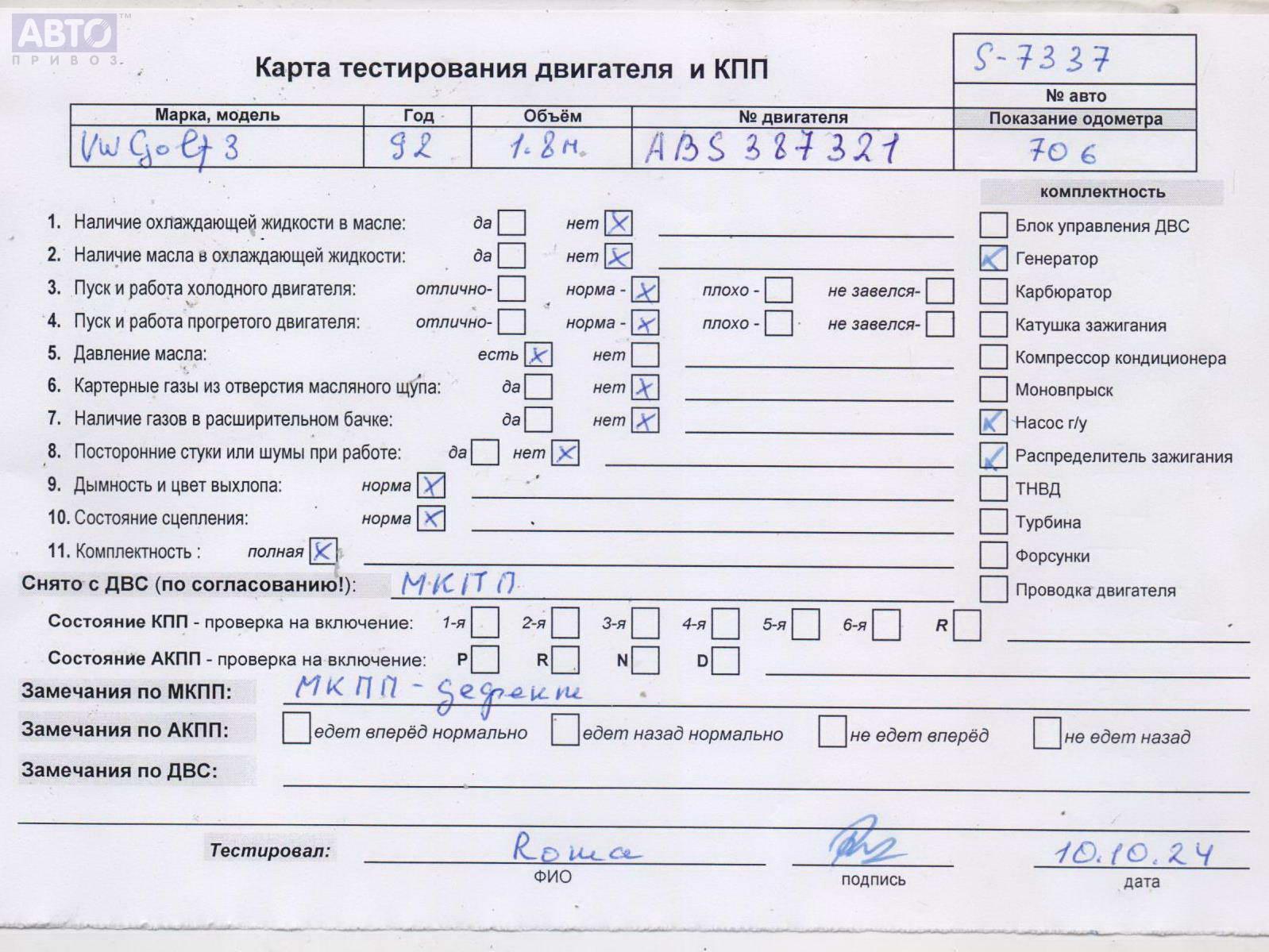 | Марка / Модель / Год: | Volkswagen Golf-3 1992 |