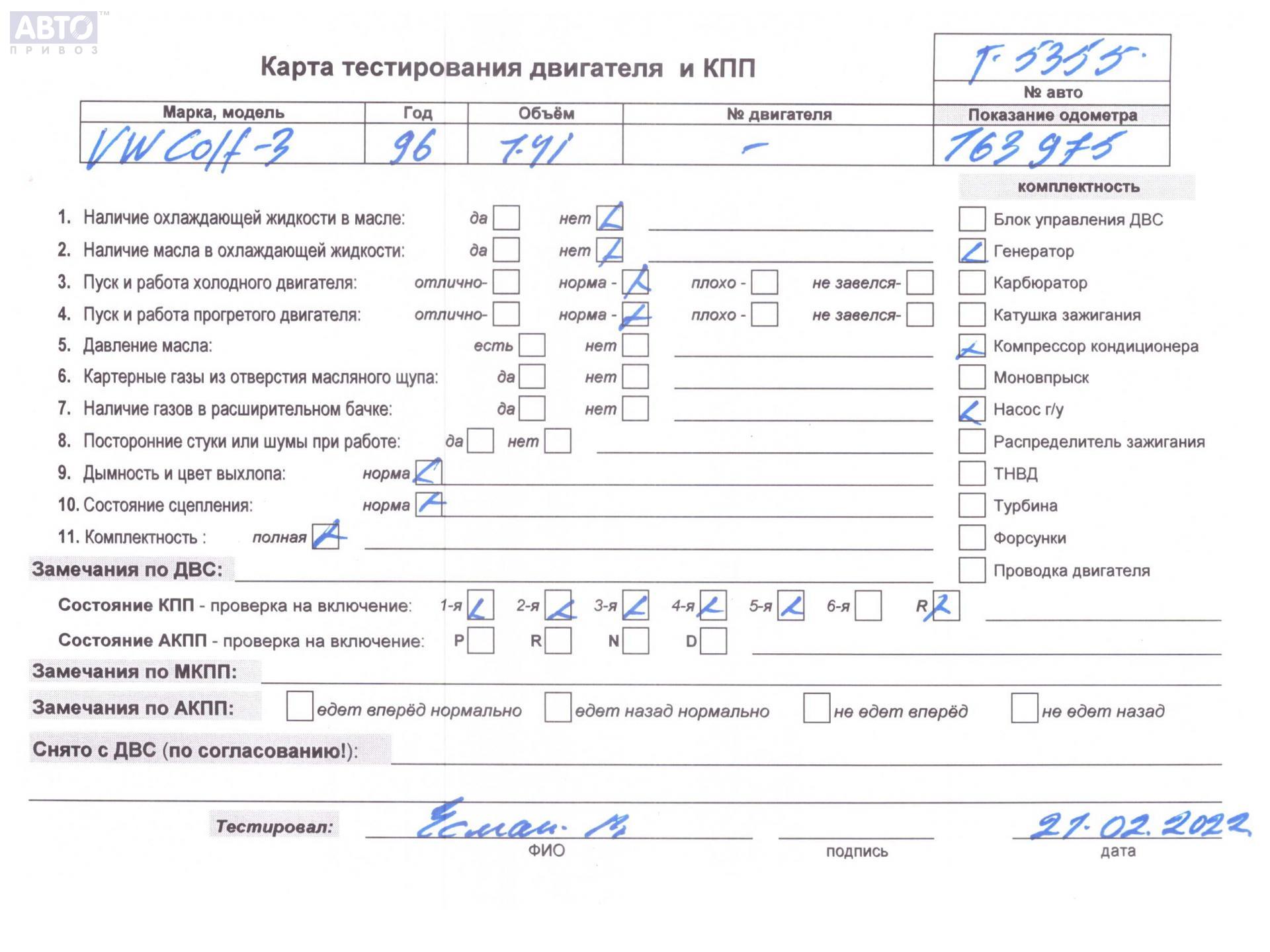 | Марка / Модель / Год: | Volkswagen Golf-3 1996 |