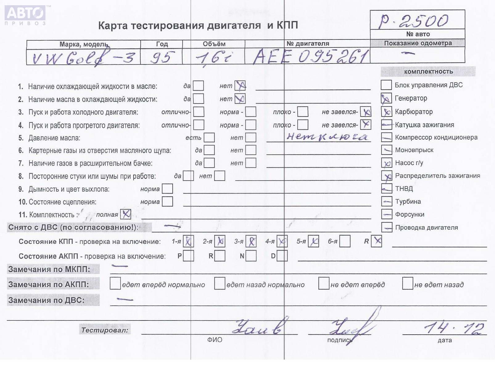 | Марка / Модель / Год: | Volkswagen Golf-3 1995 |