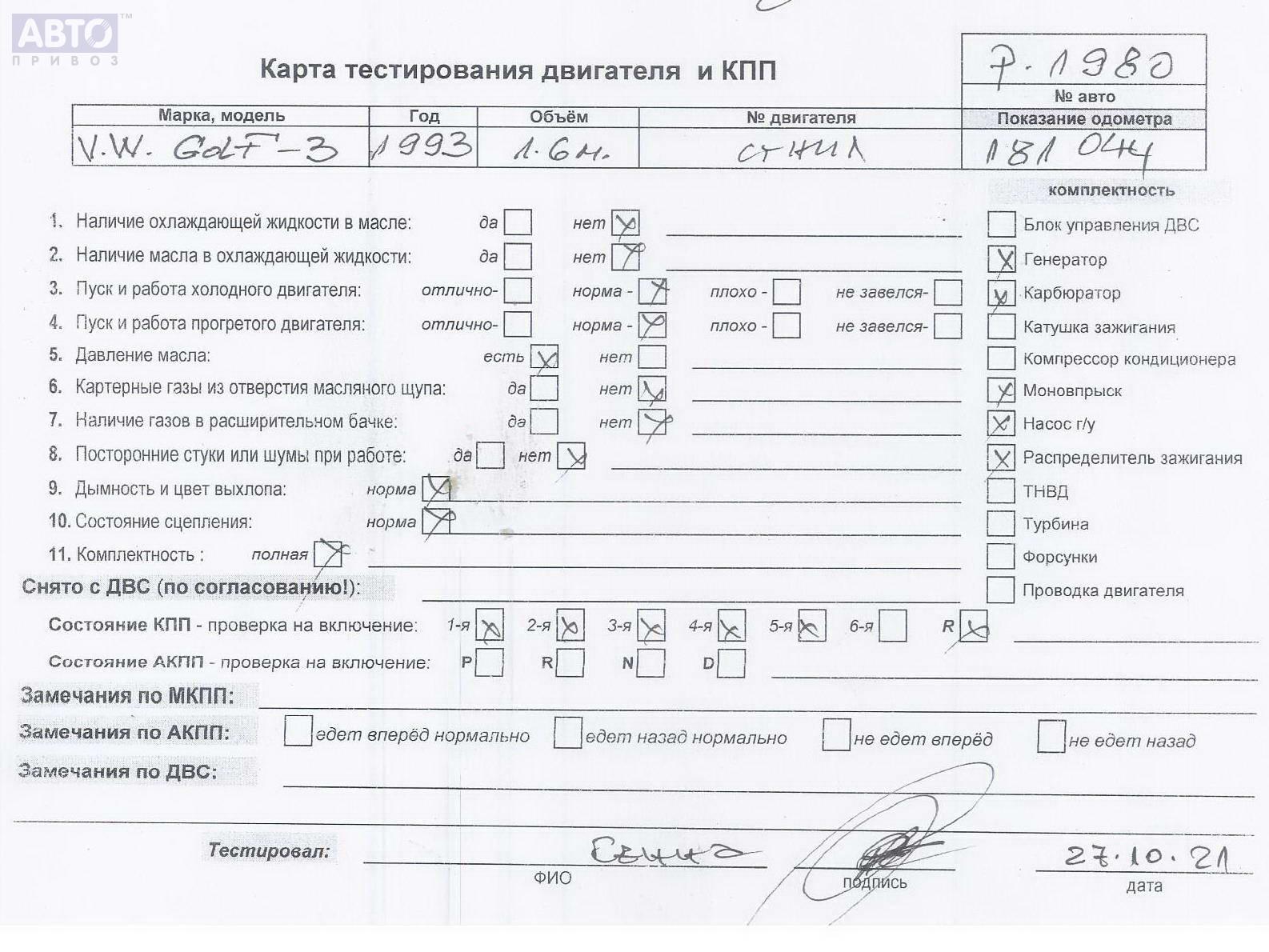 | Марка / Модель / Год: | Volkswagen Golf-3 1994 |