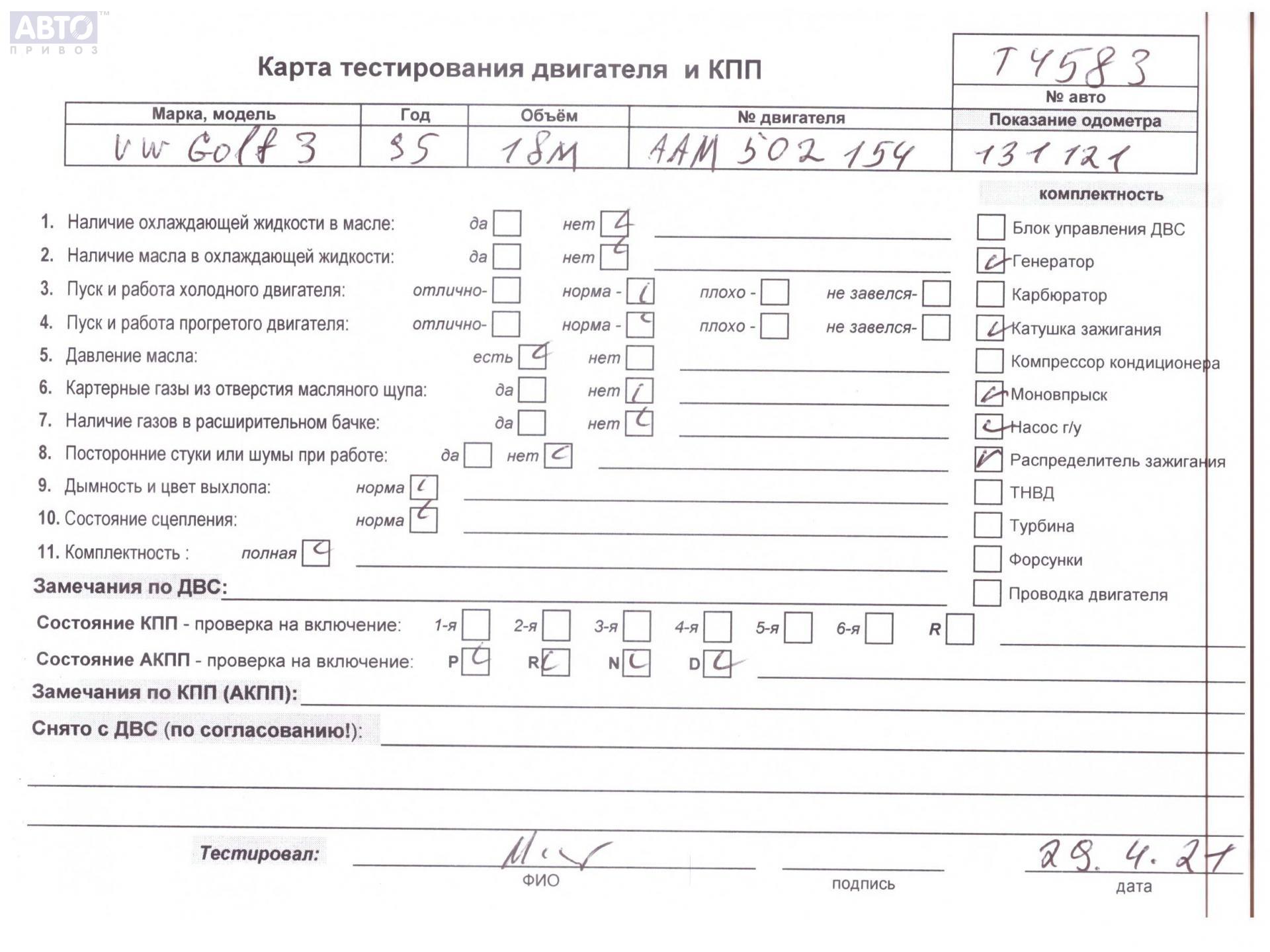 | Марка / Модель / Год: | Volkswagen Golf-3 1995 |