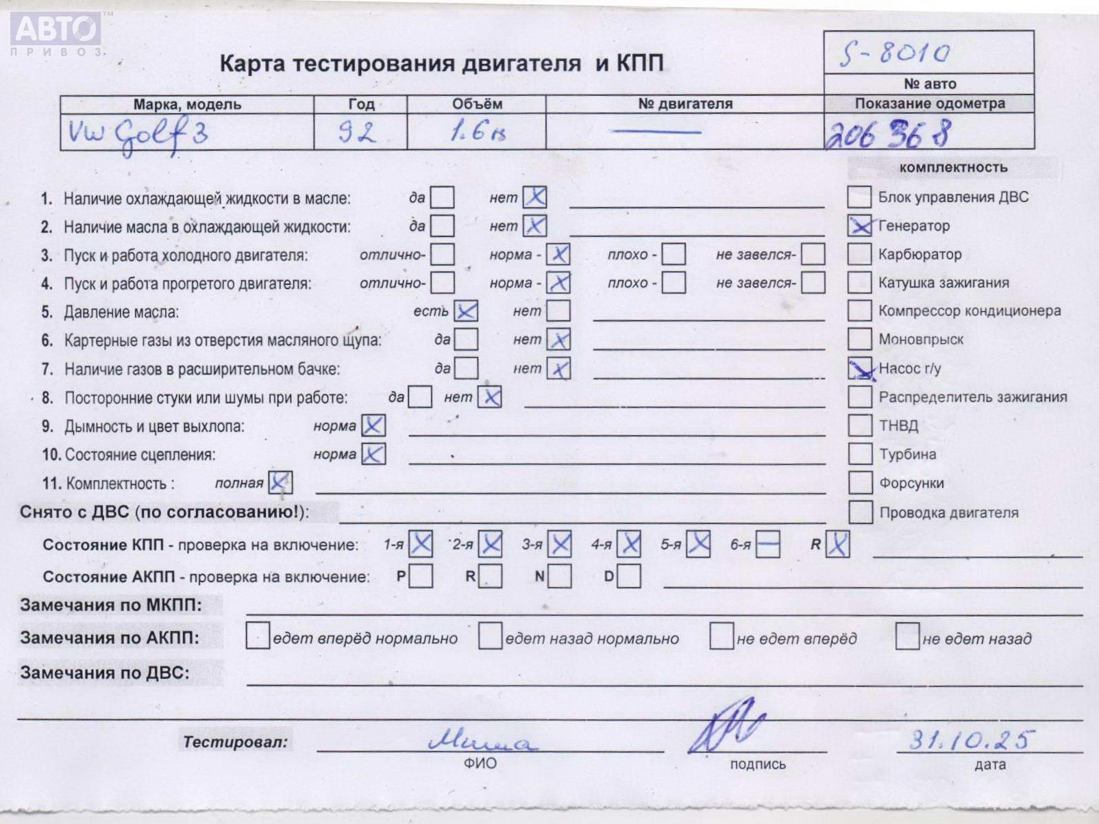 | Марка / Модель / Год: | Volkswagen Golf-3 1992 |