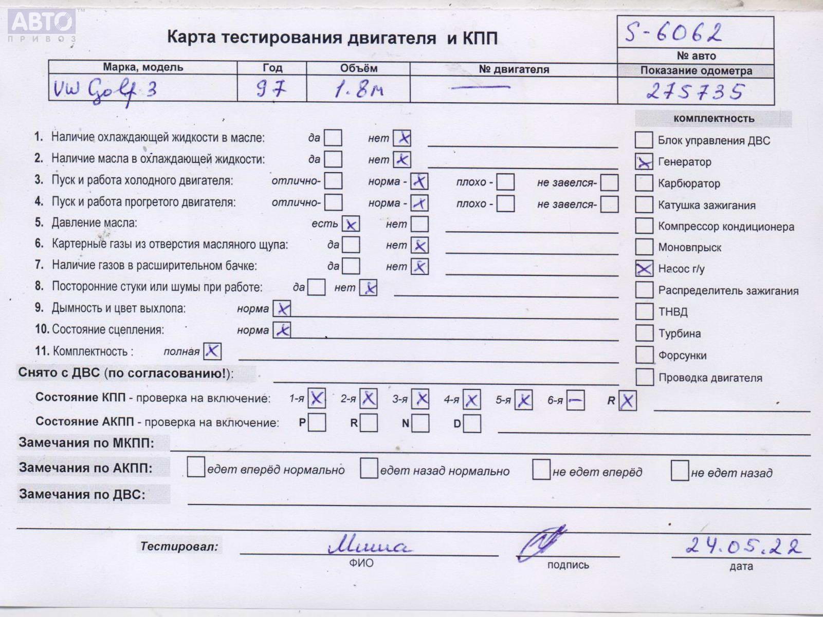 | Марка / Модель / Год: | Volkswagen Golf-3 1997 |