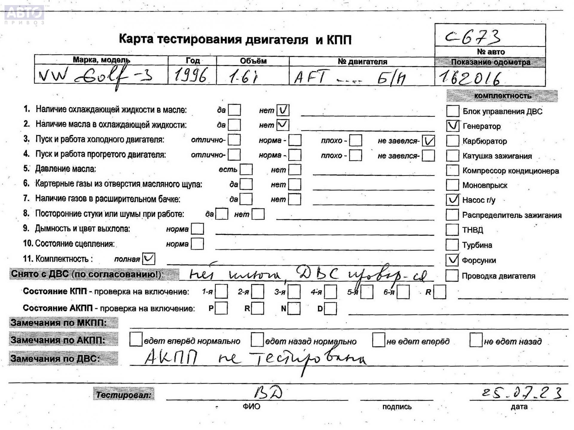 | Автомобиль / VIN: | C0673 WVWZZZ1HZWW088414 |