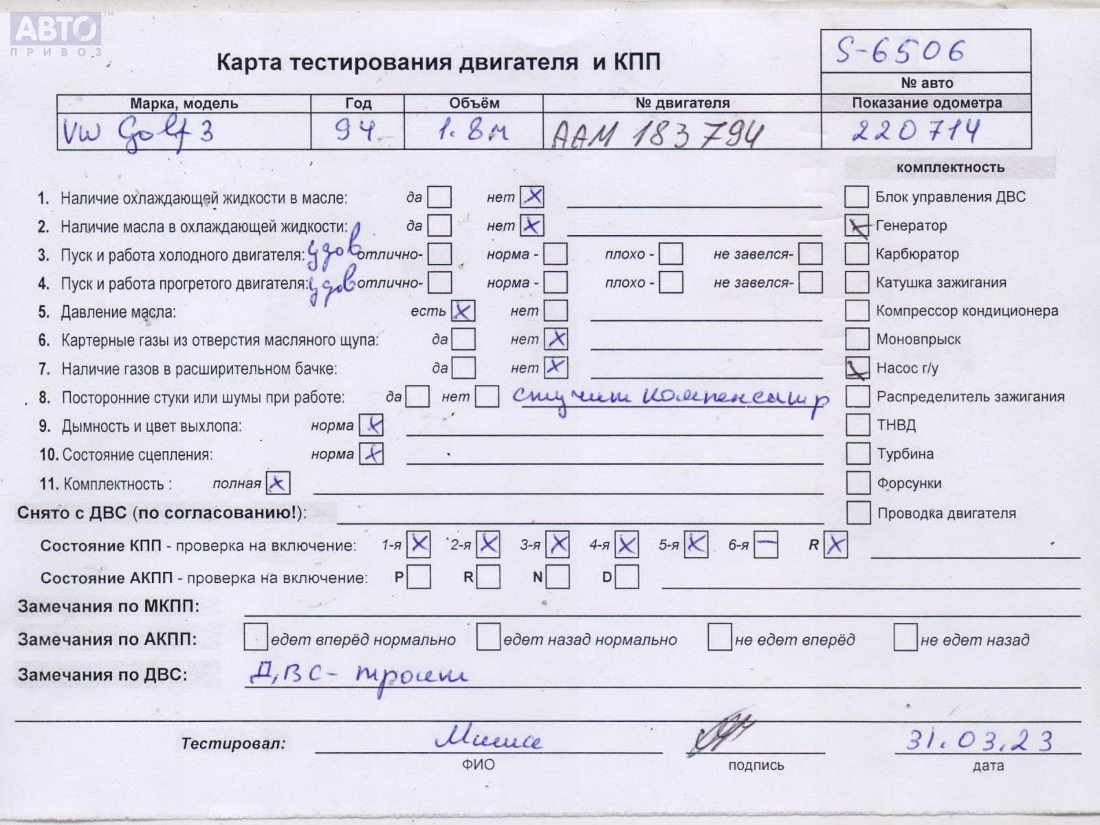 | Марка / Модель / Год: | Volkswagen Golf-3 1994 |