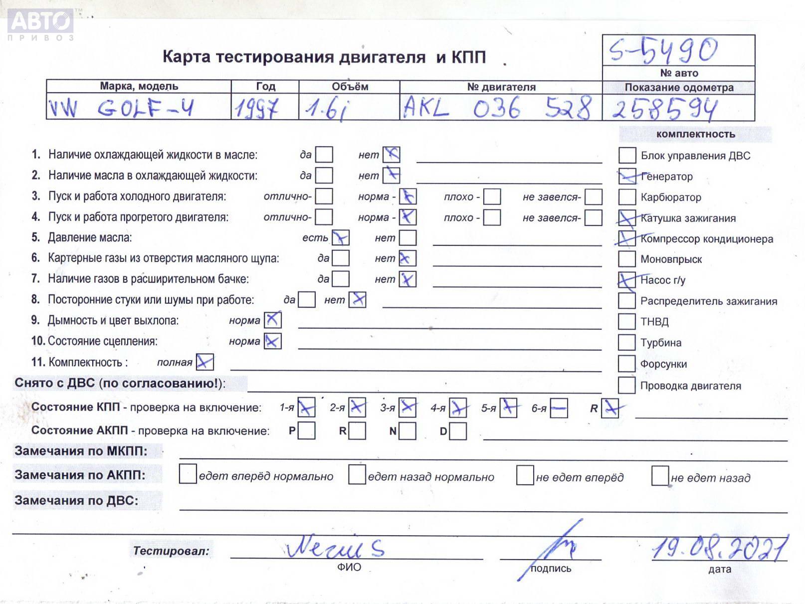 | Марка / Модель / Год: | Volkswagen Golf-4 1997 |