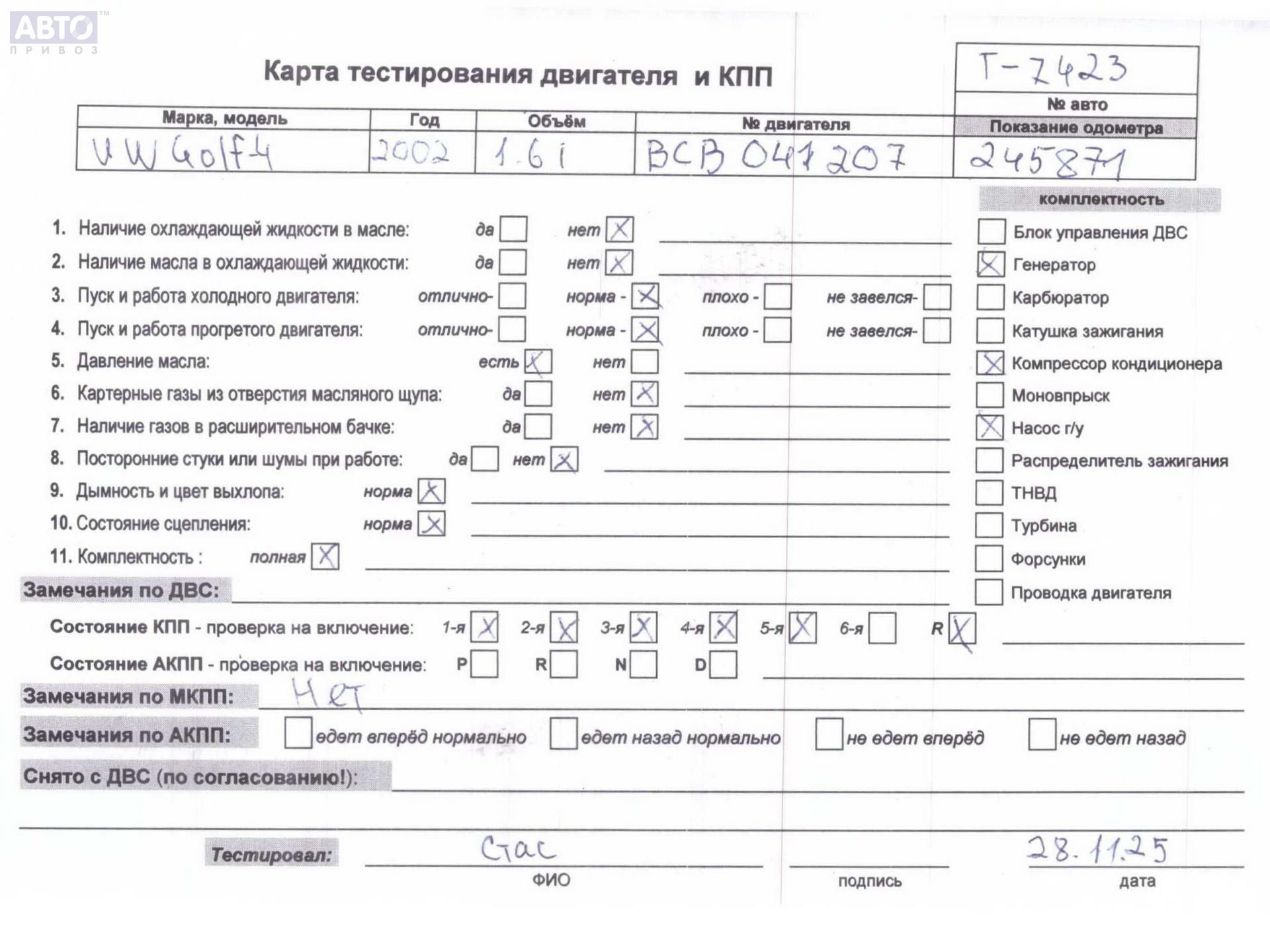 | Марка / Модель / Год: | Volkswagen Golf-4 2002 |