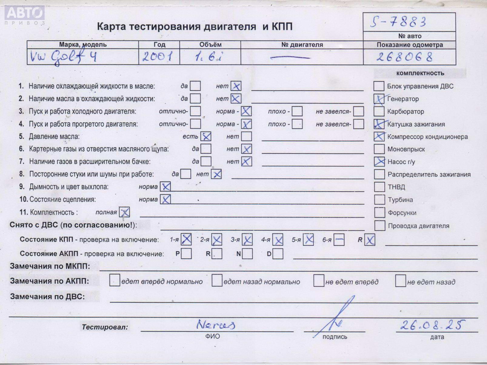 | Марка / Модель / Год: | Volkswagen Golf-4 2001 |