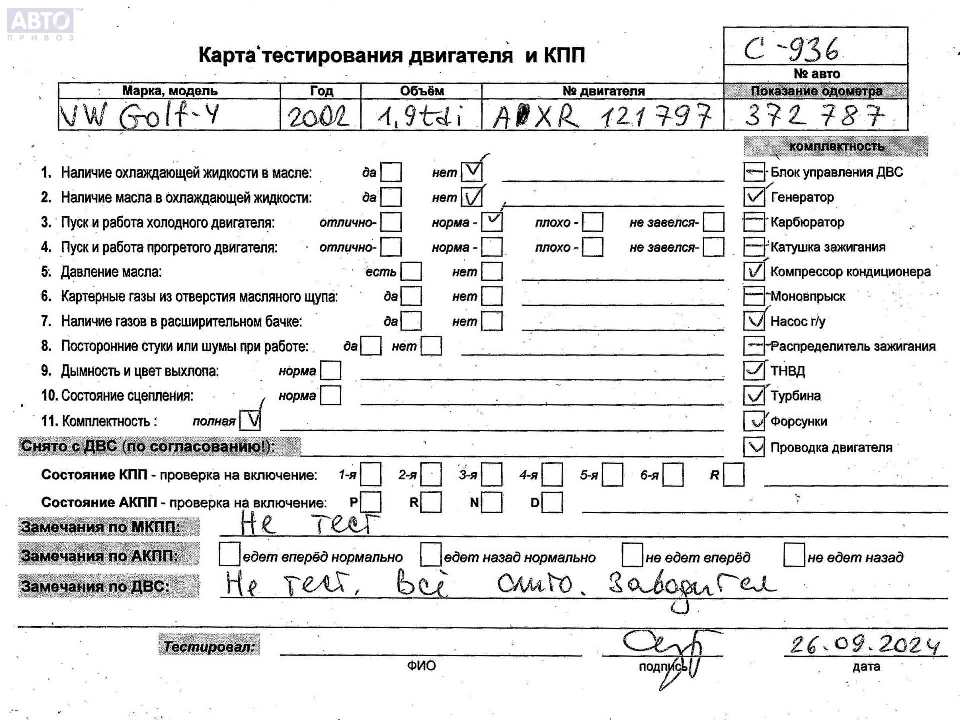 | Автомобиль / VIN: | C0936 WVWZZZ1JZ3W462665 |