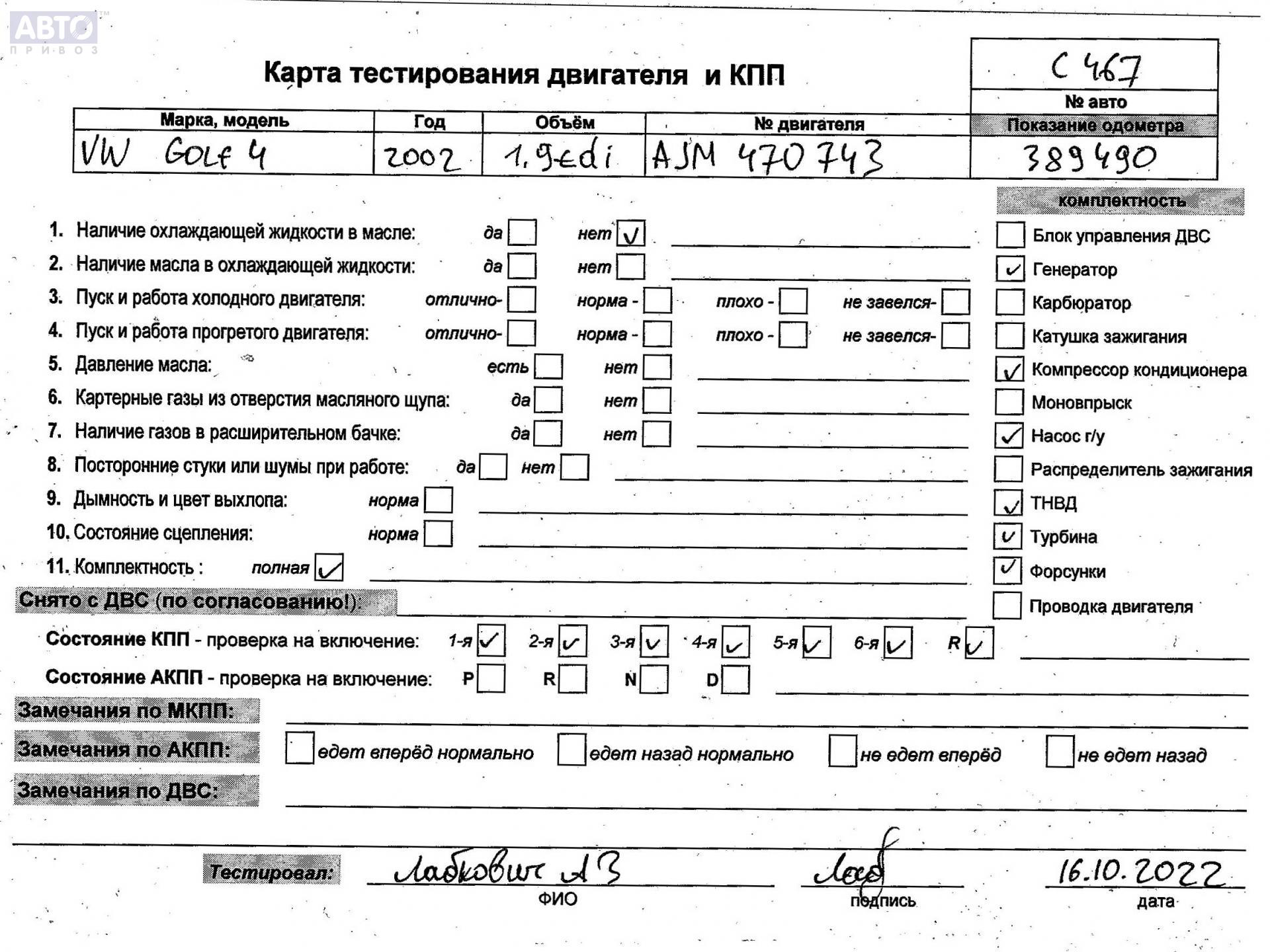 | Автомобиль / VIN: | C0467 WVWZZZ1JZ1W691502 |
