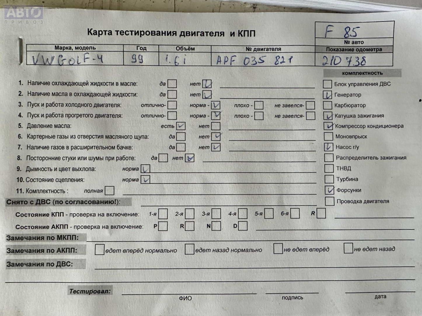 | Марка / Модель / Год: | Volkswagen Golf-4 1999 |