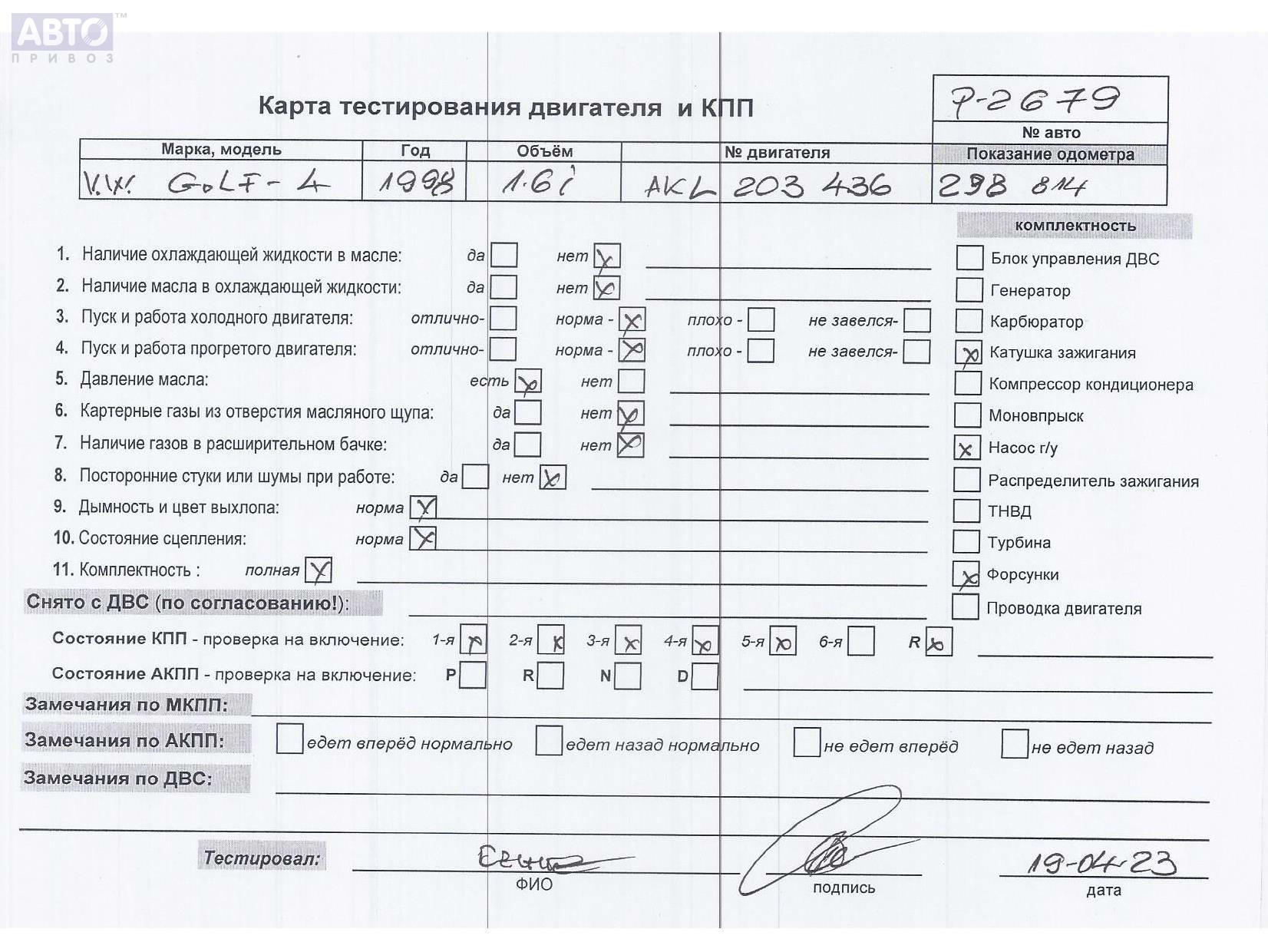 | Автомобиль / VIN: | P2679 WVWZZZ1JZXB087999 |