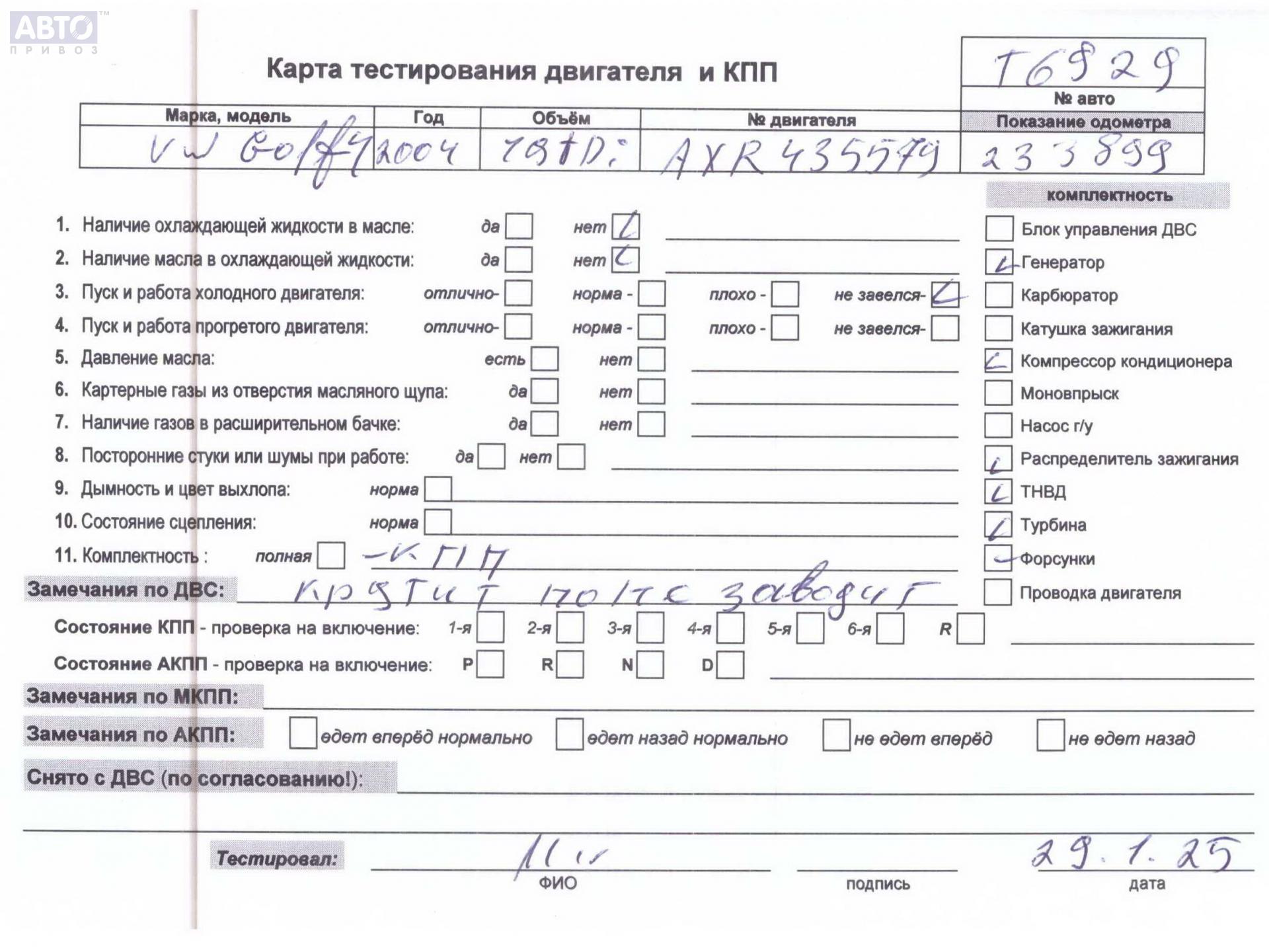 | Автомобиль / VIN: | T6929 WVWZZZ1JZ6W021928 |