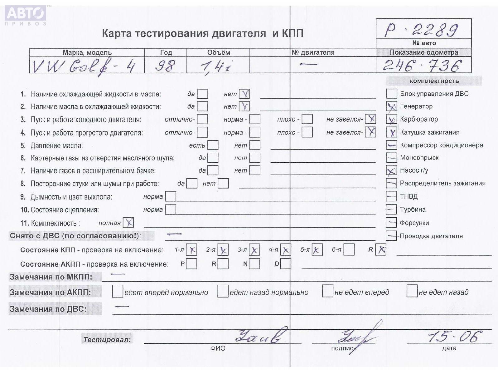 | Автомобиль / VIN: | P2289 WVWZZZ1JZWB046713 |