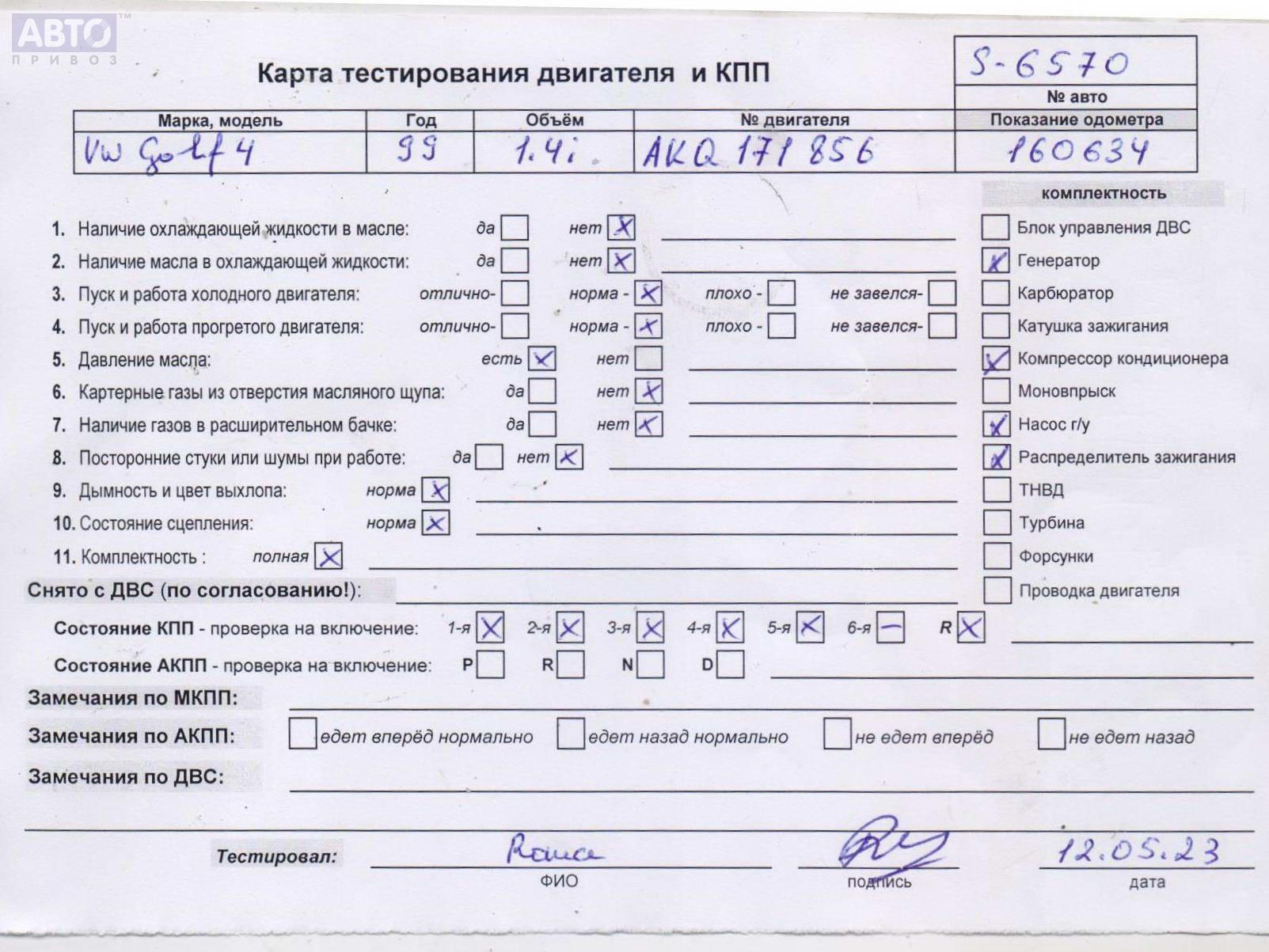 | Марка / Модель / Год: | Volkswagen Golf-4 1999 |