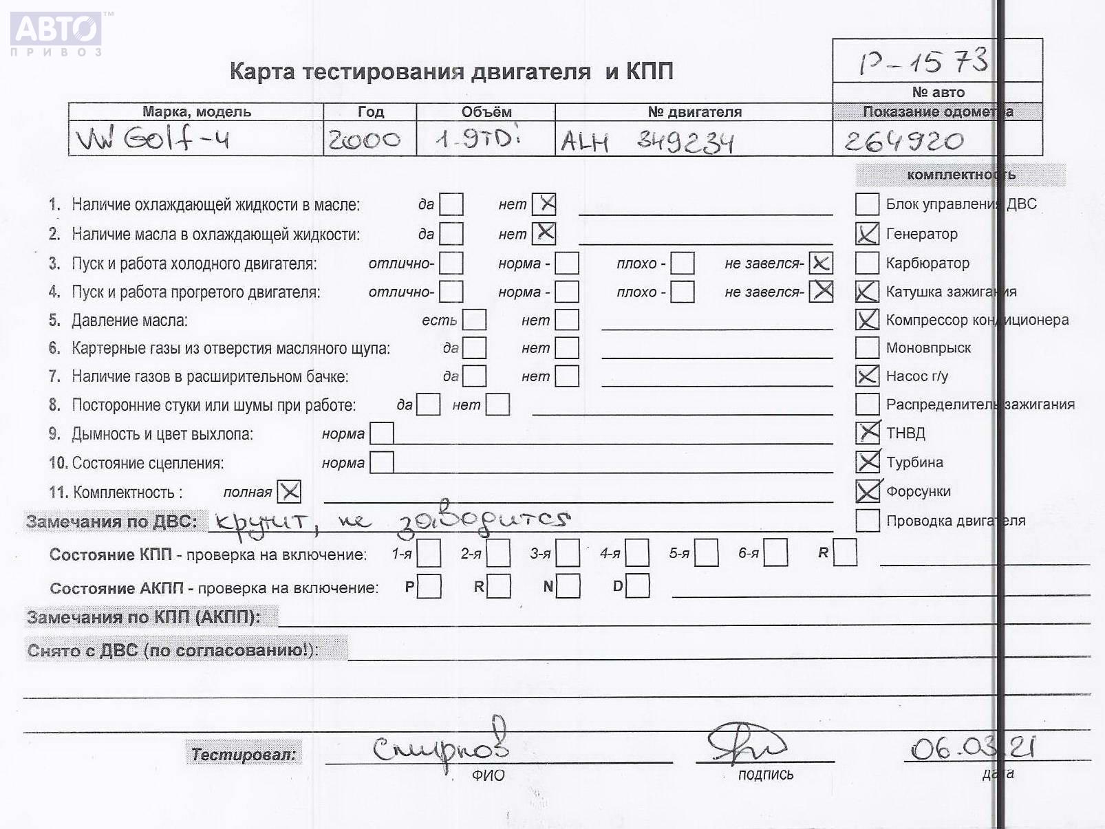 | Марка / Модель / Год: | Volkswagen Golf-4 2000 |