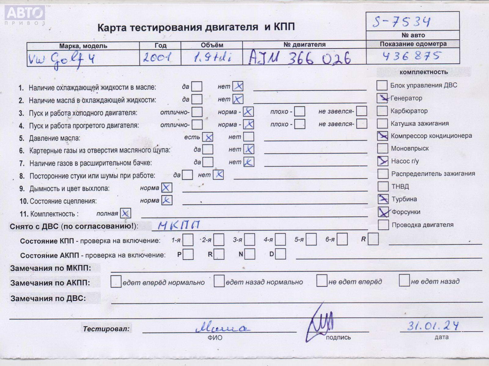 | Марка / Модель / Год: | Volkswagen Golf-4 2001 |