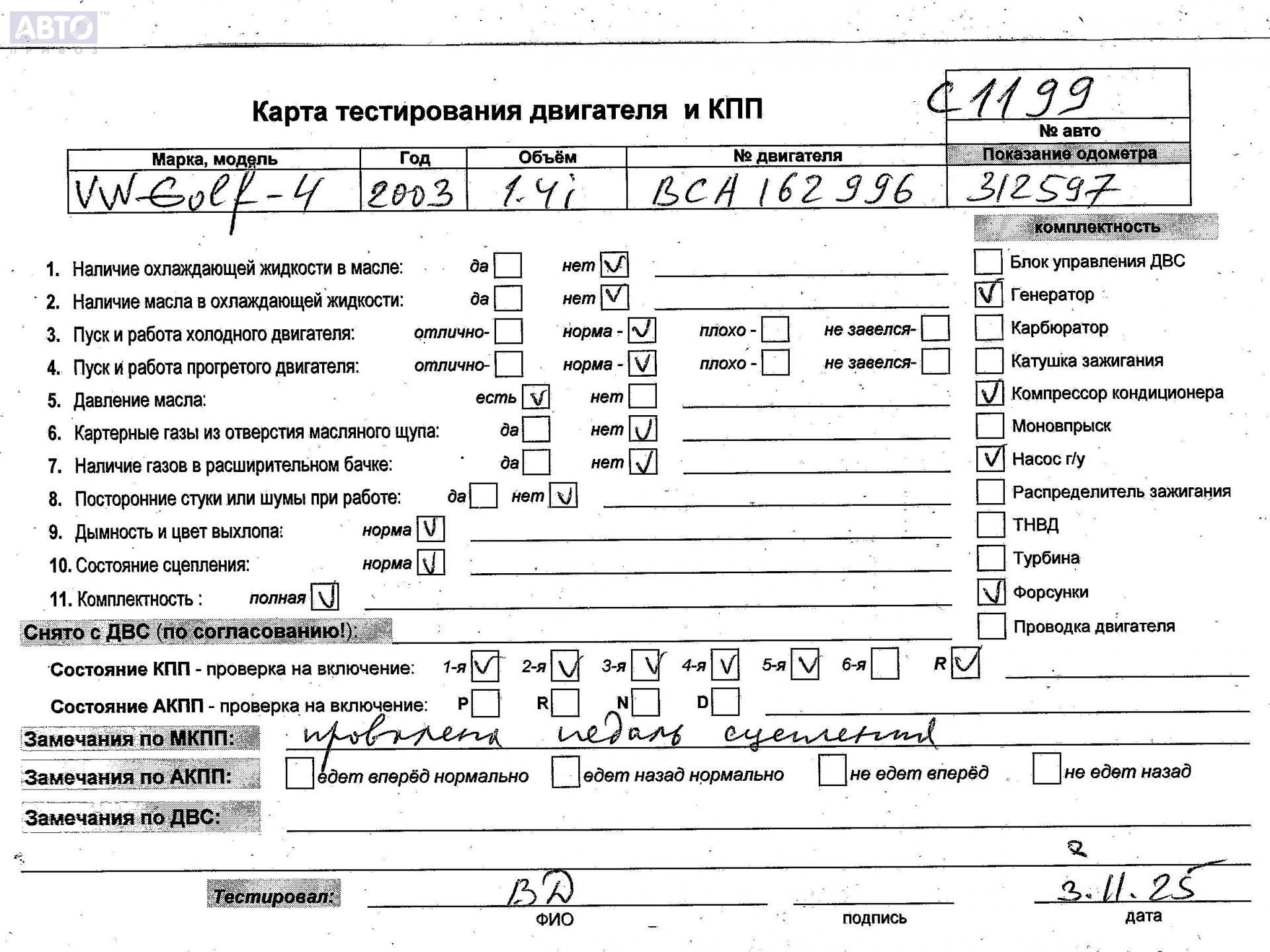| Автомобиль / VIN: | C1199 WVWZZZ1JZ3W148544 |