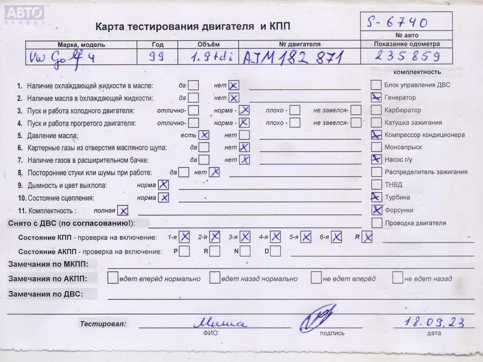 | Марка / Модель / Год: | Volkswagen Golf-4 1999 |