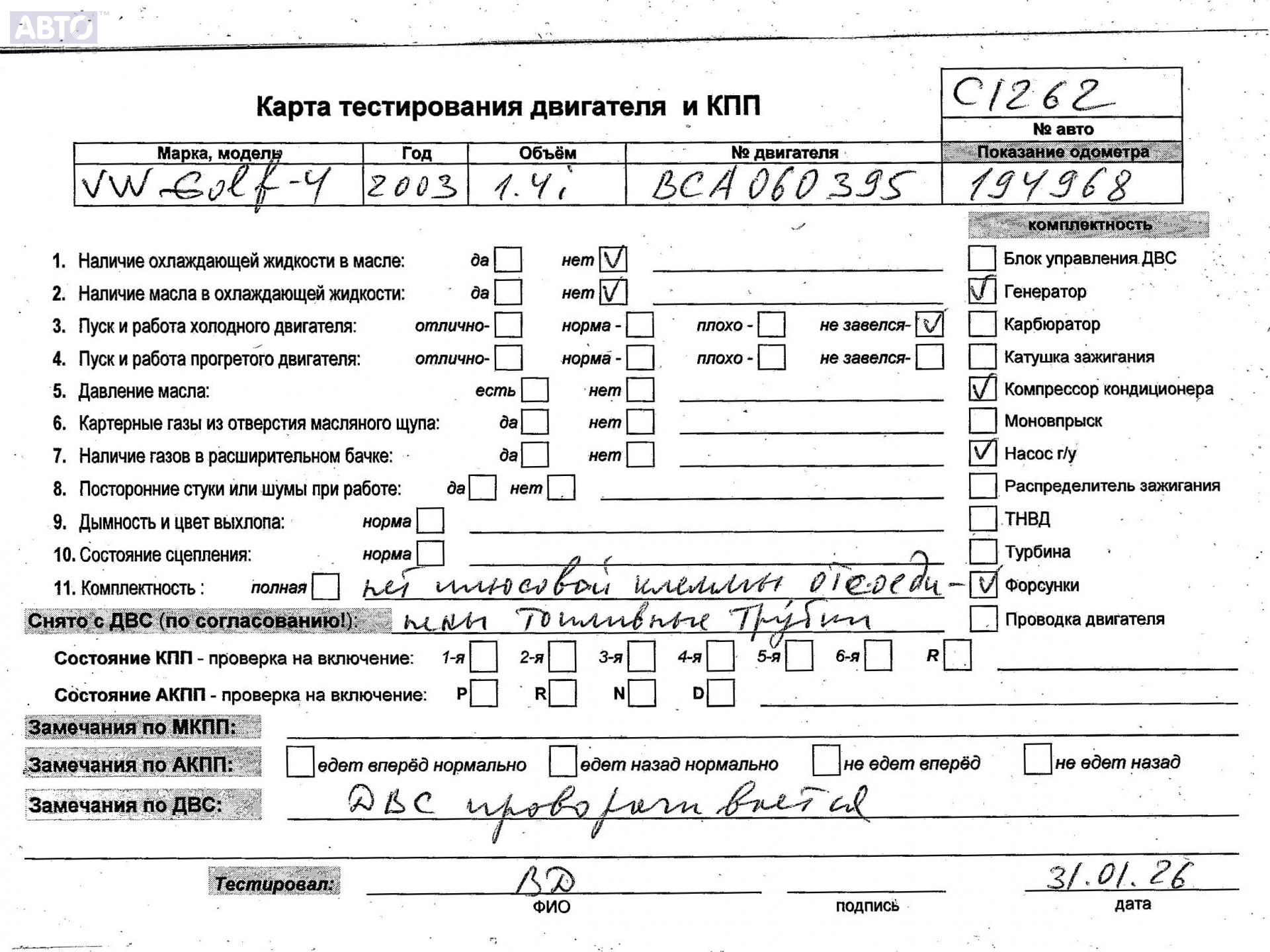 | Марка / Модель / Год: | Volkswagen Golf-4 2003 |