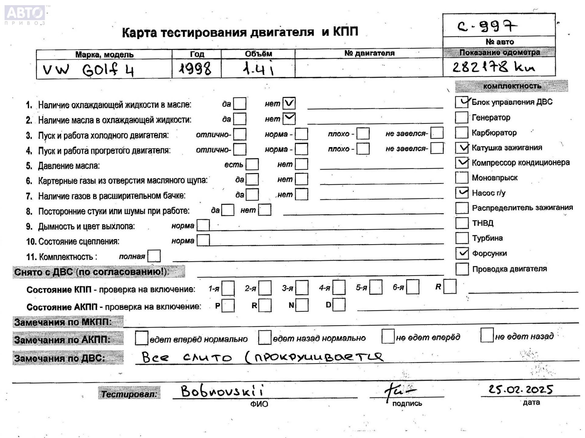 | Марка / Модель / Год: | Volkswagen Golf-4 1998 |