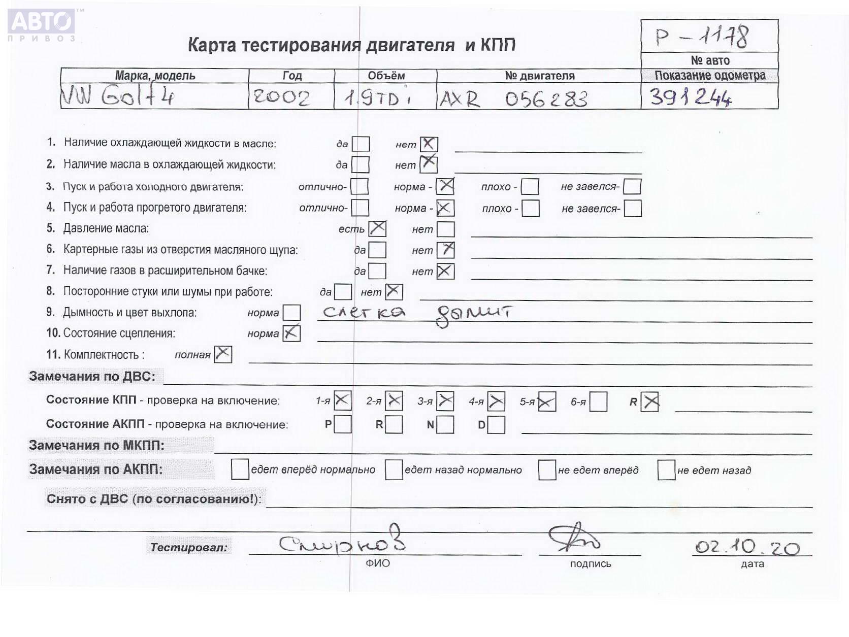| Марка / Модель / Год: | Volkswagen Golf-4 2002 |
