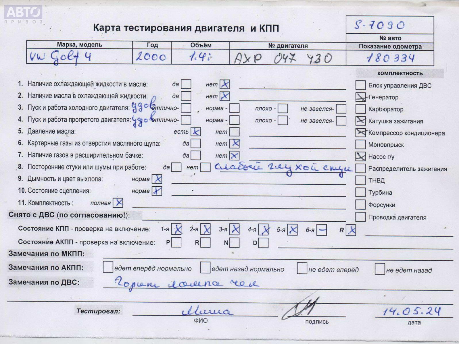 | Марка / Модель / Год: | Volkswagen Golf-4 2000 |