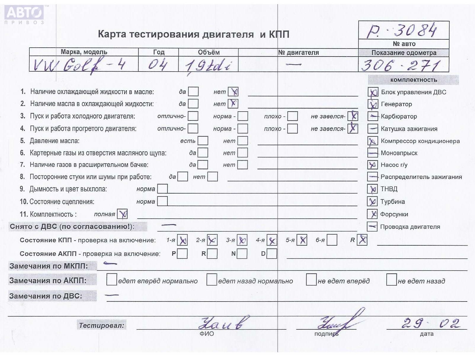 | Автомобиль / VIN: | P3084 WVWZZZ1JZ4W178328 |
