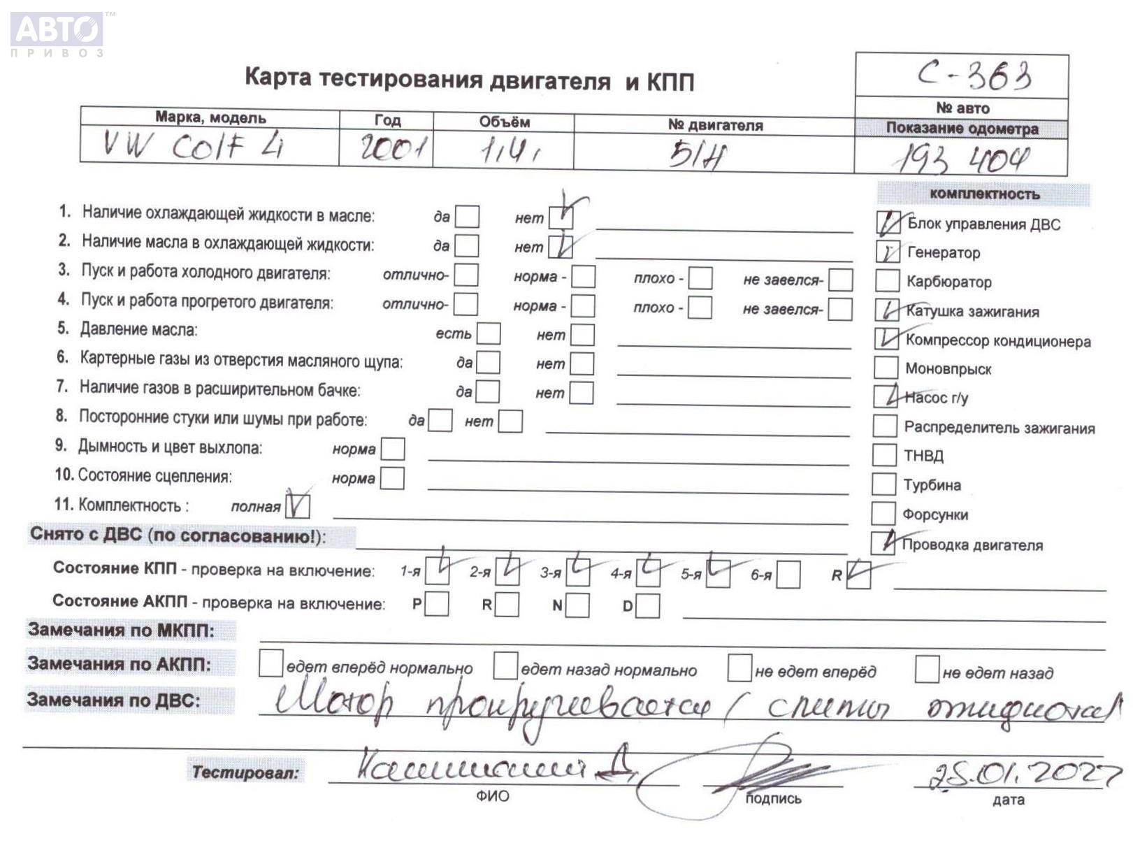| Марка / Модель / Год: | Volkswagen Golf-4 2001 |