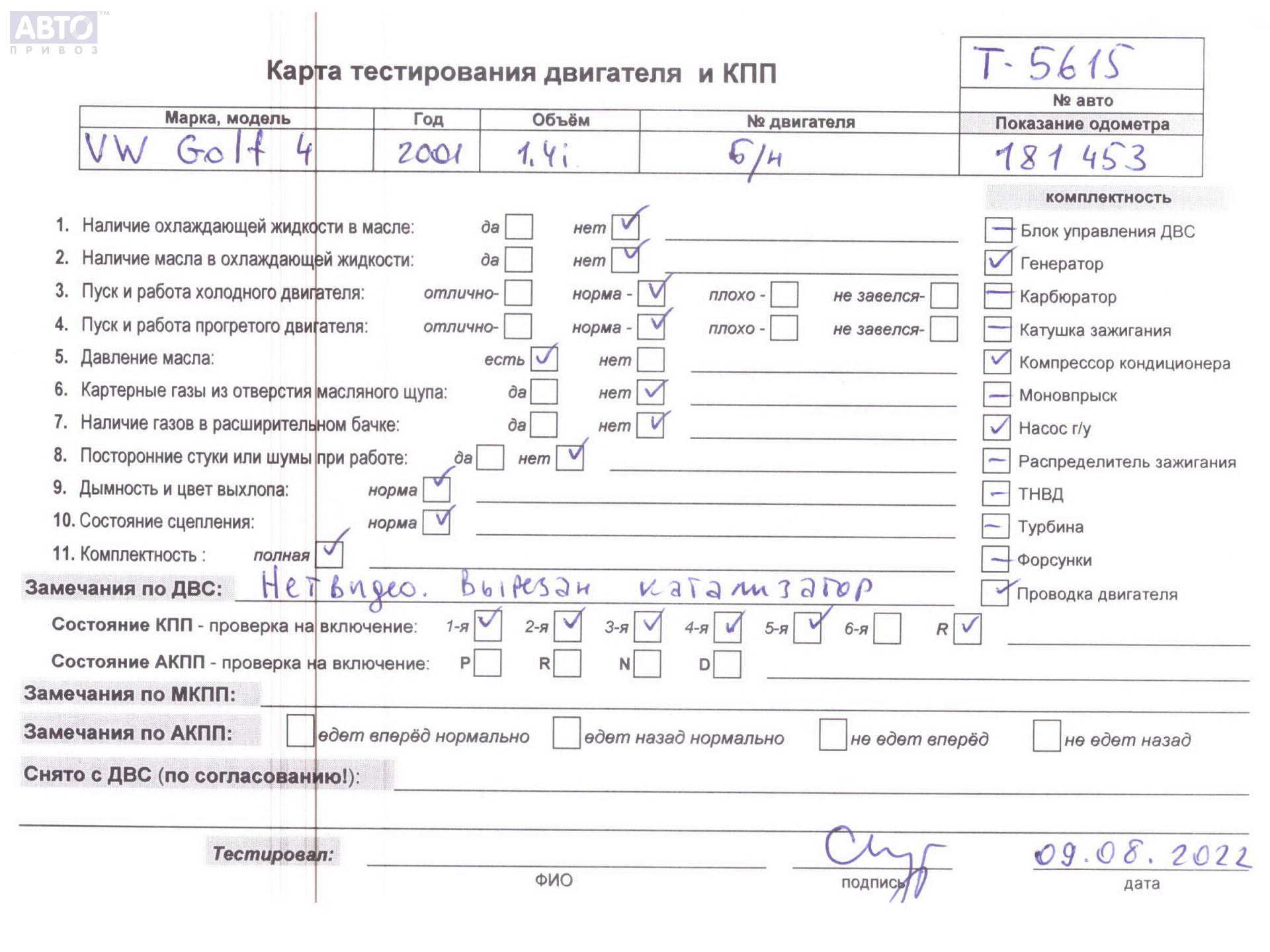 | Автомобиль / VIN: | T5615 WVWZZZ1JZ2W601954 |