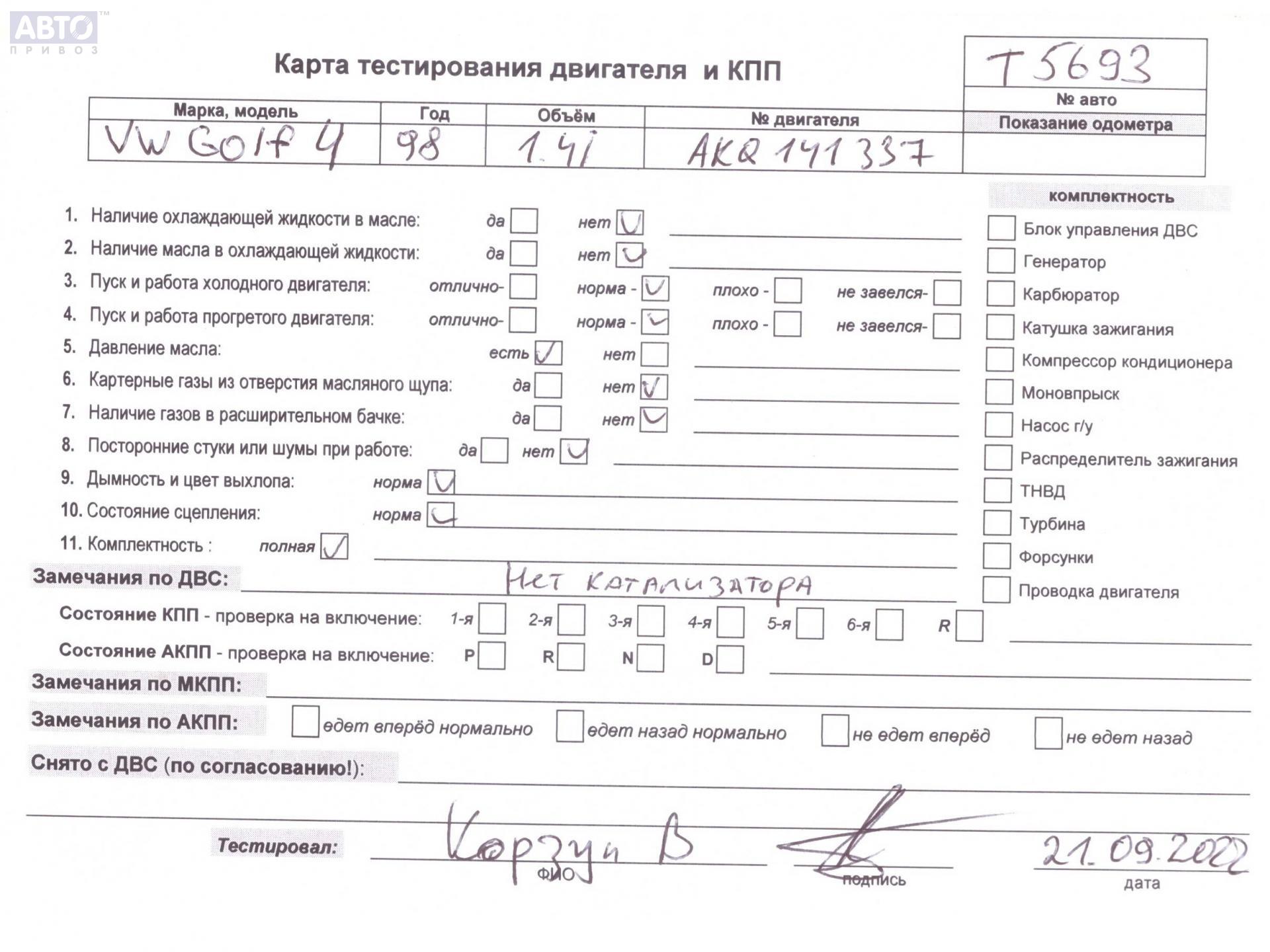 | Марка / Модель / Год: | Volkswagen Golf-4 1998 |