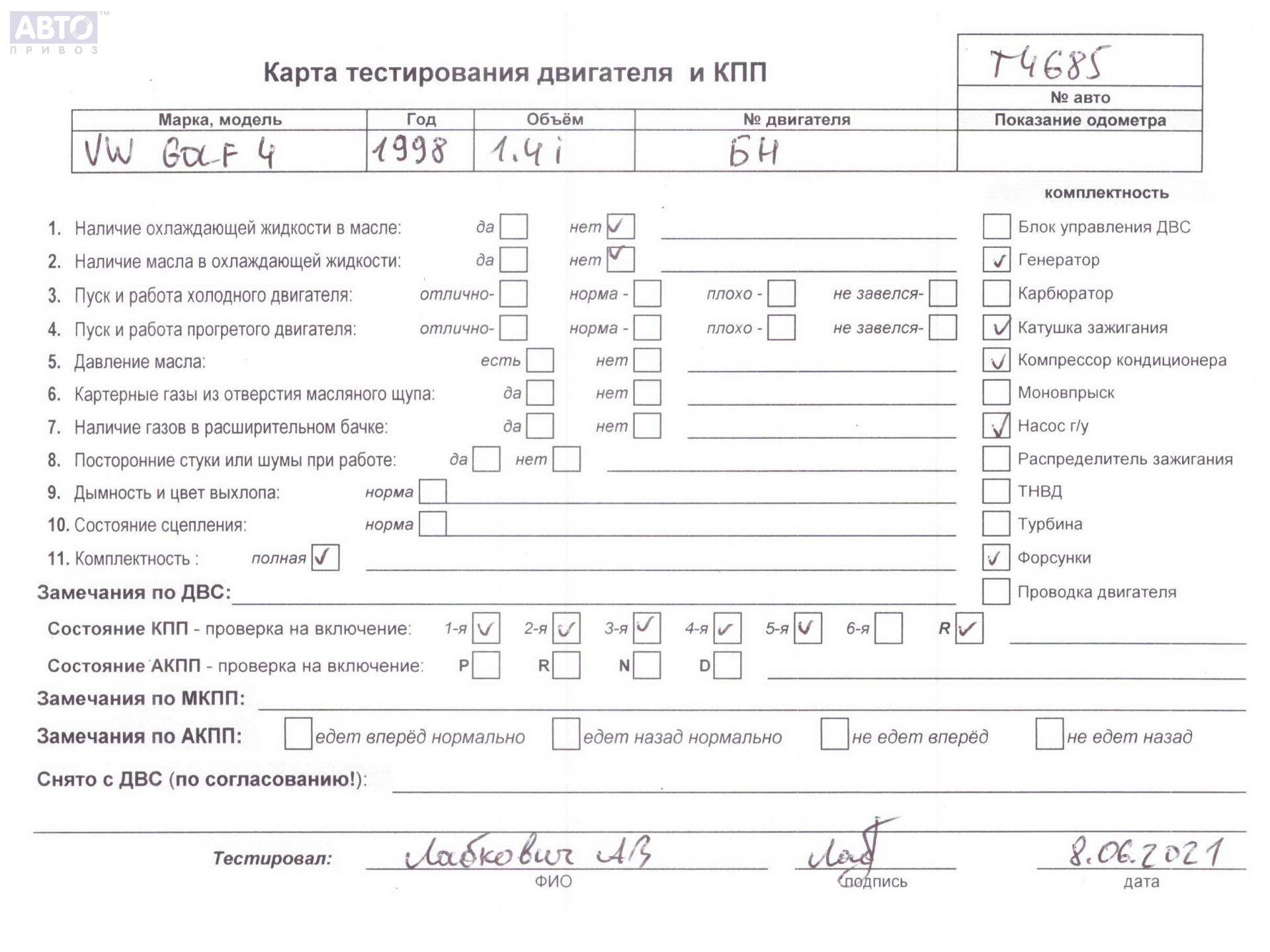 | Автомобиль / VIN: | T4685 WVWZZZ1JZWW060203 |