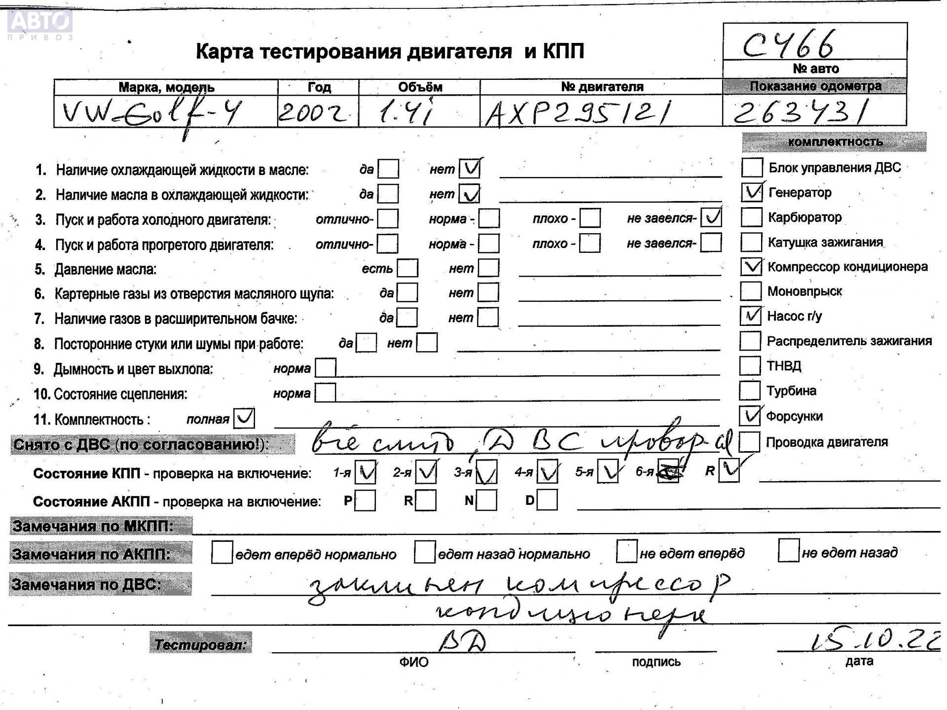 | Марка / Модель / Год: | Volkswagen Golf-4 2002 |