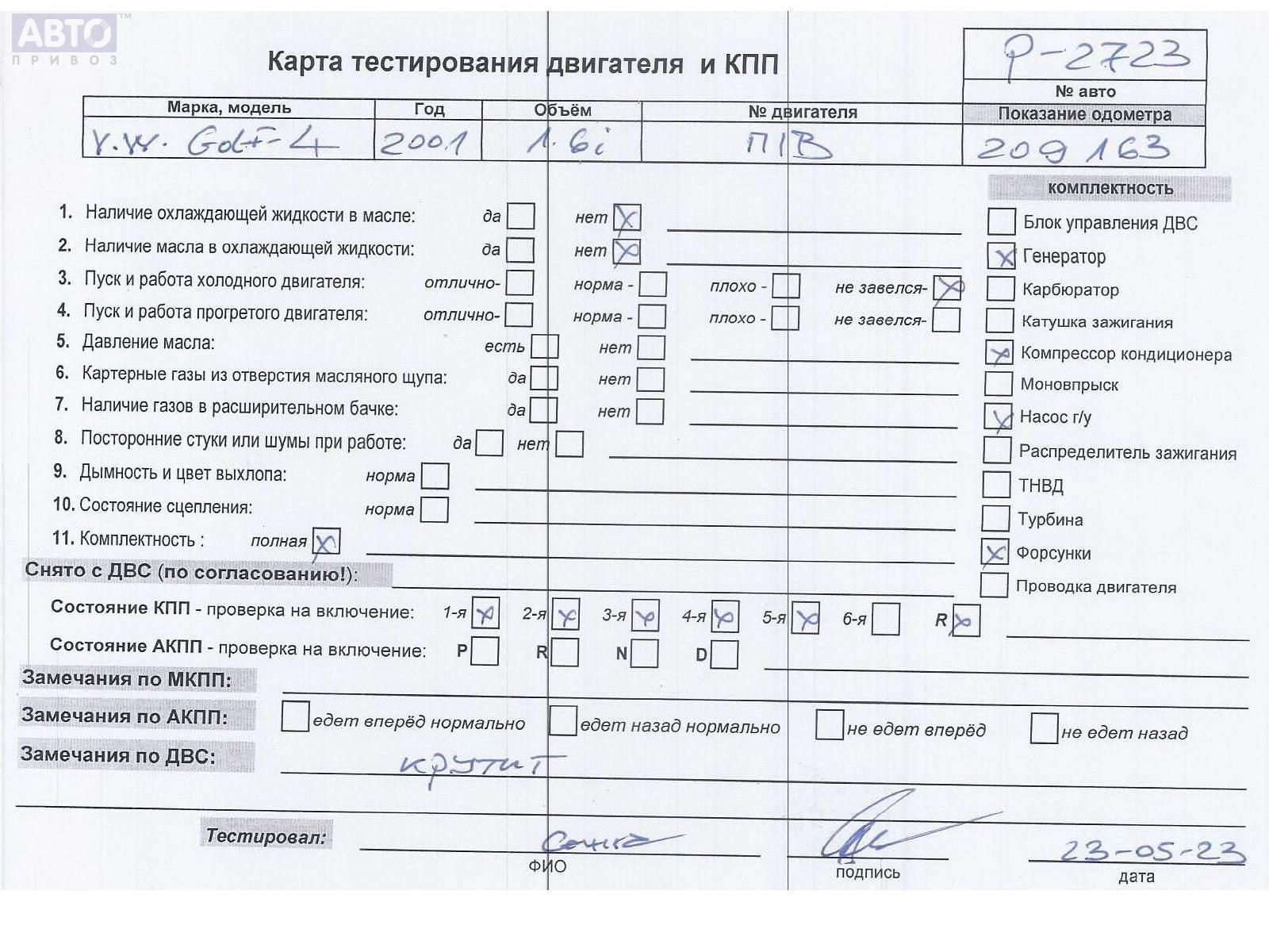| Марка / Модель / Год: | Volkswagen Golf-4 2001 |