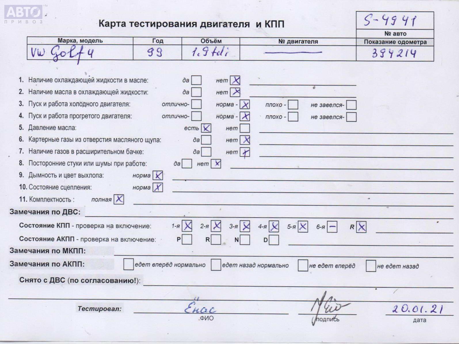 | Автомобиль / VIN: | S4941 WVWZZZ1JZYB043002 |