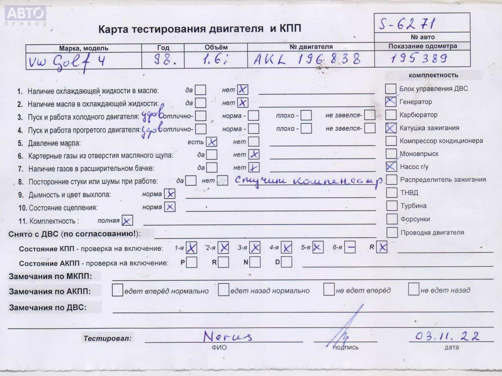 | Марка / Модель / Год: | Volkswagen Golf-4 1998 |
