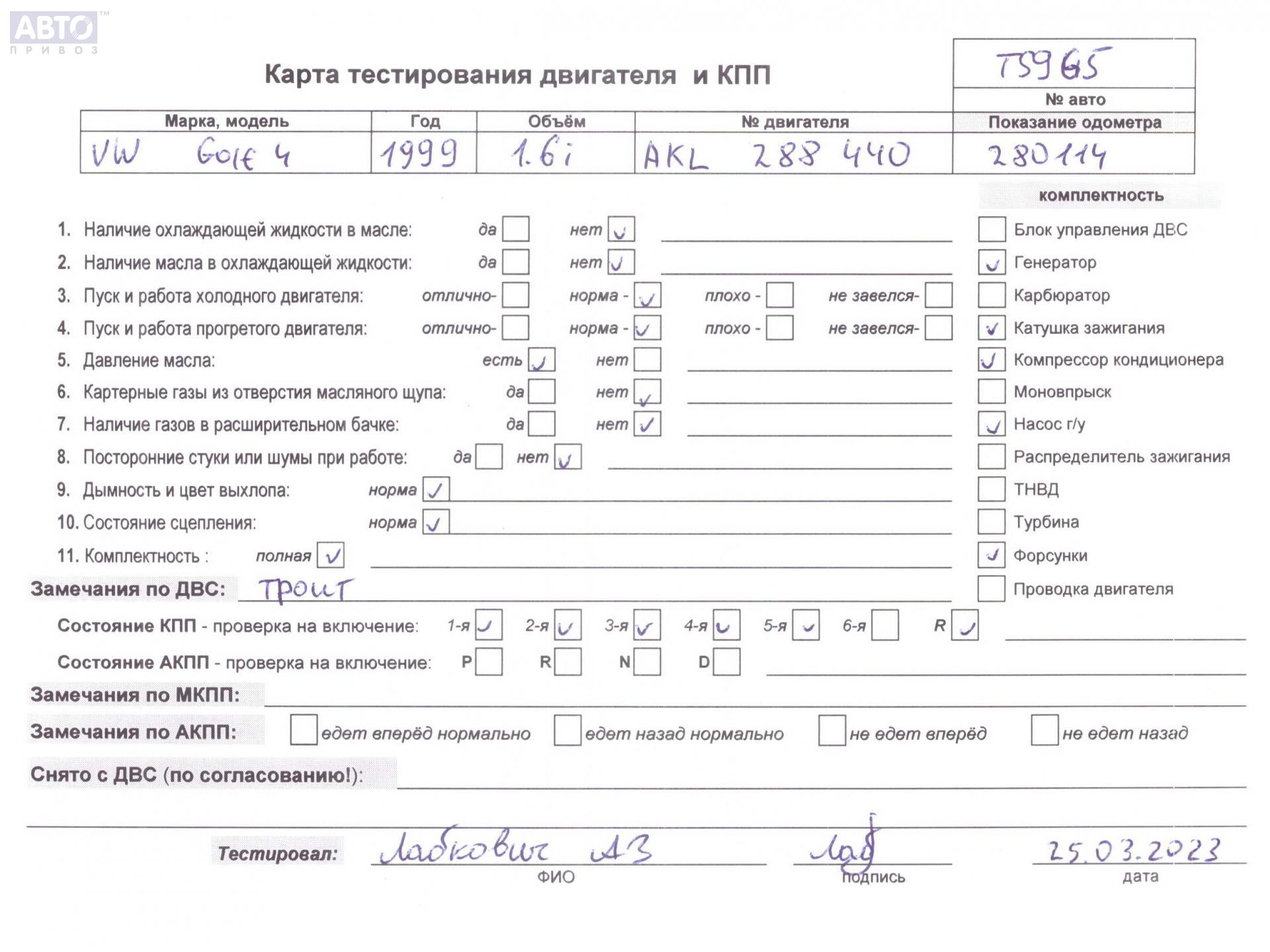| Марка / Модель / Год: | Volkswagen Golf-4 1999 |