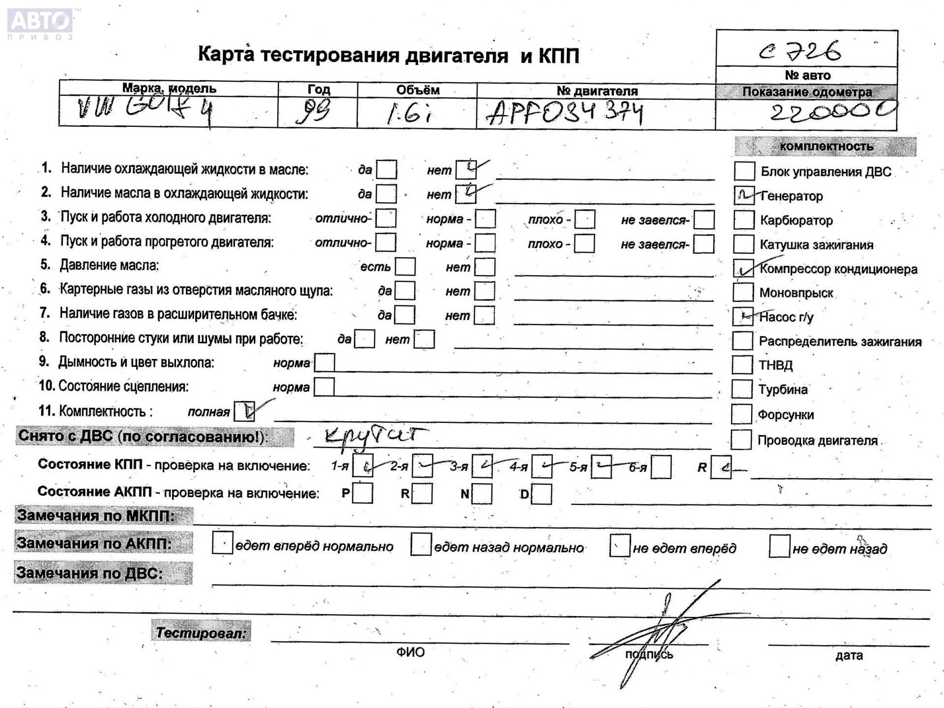 | Автомобиль / VIN: | C0726 WVWZZZ1JZYW462714 |