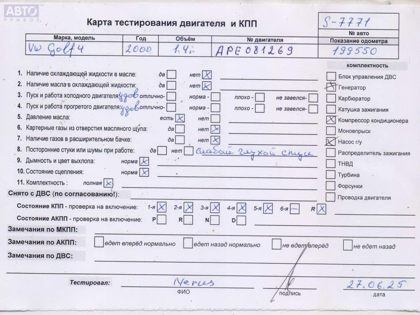 | Марка / Модель / Год: | Volkswagen Golf-4 2000 |
