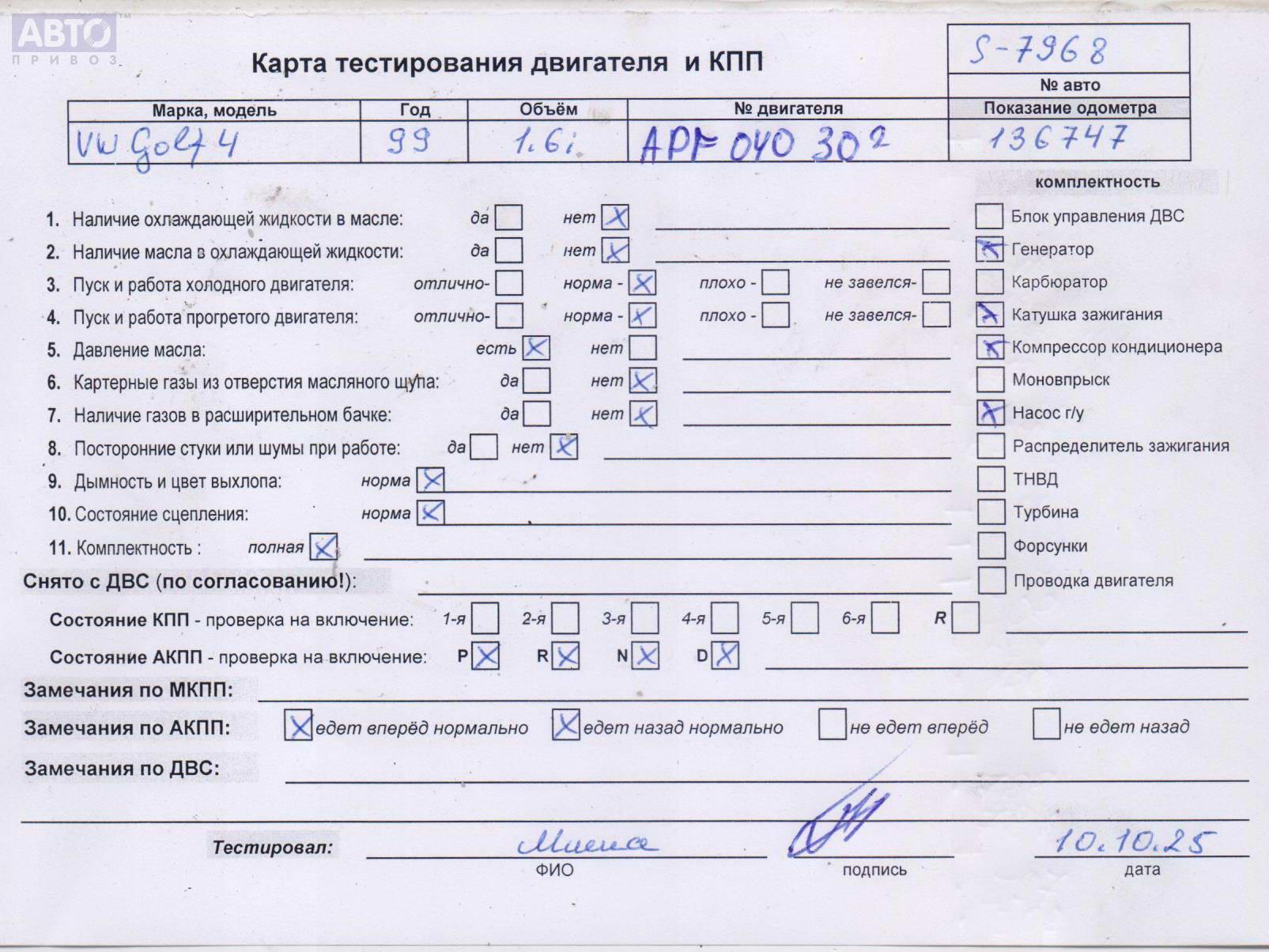 | Автомобиль / VIN: | S7968 WVWZZZ1JZYB078027 |