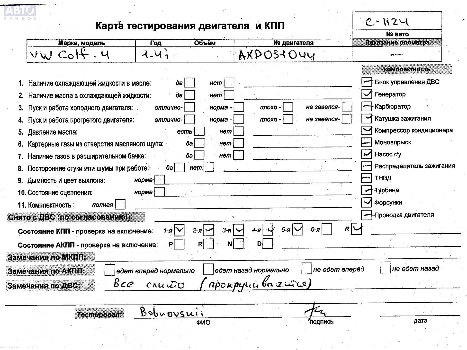 | Автомобиль / VIN: | C1124 WVWZZZ1JZ1W049844 |